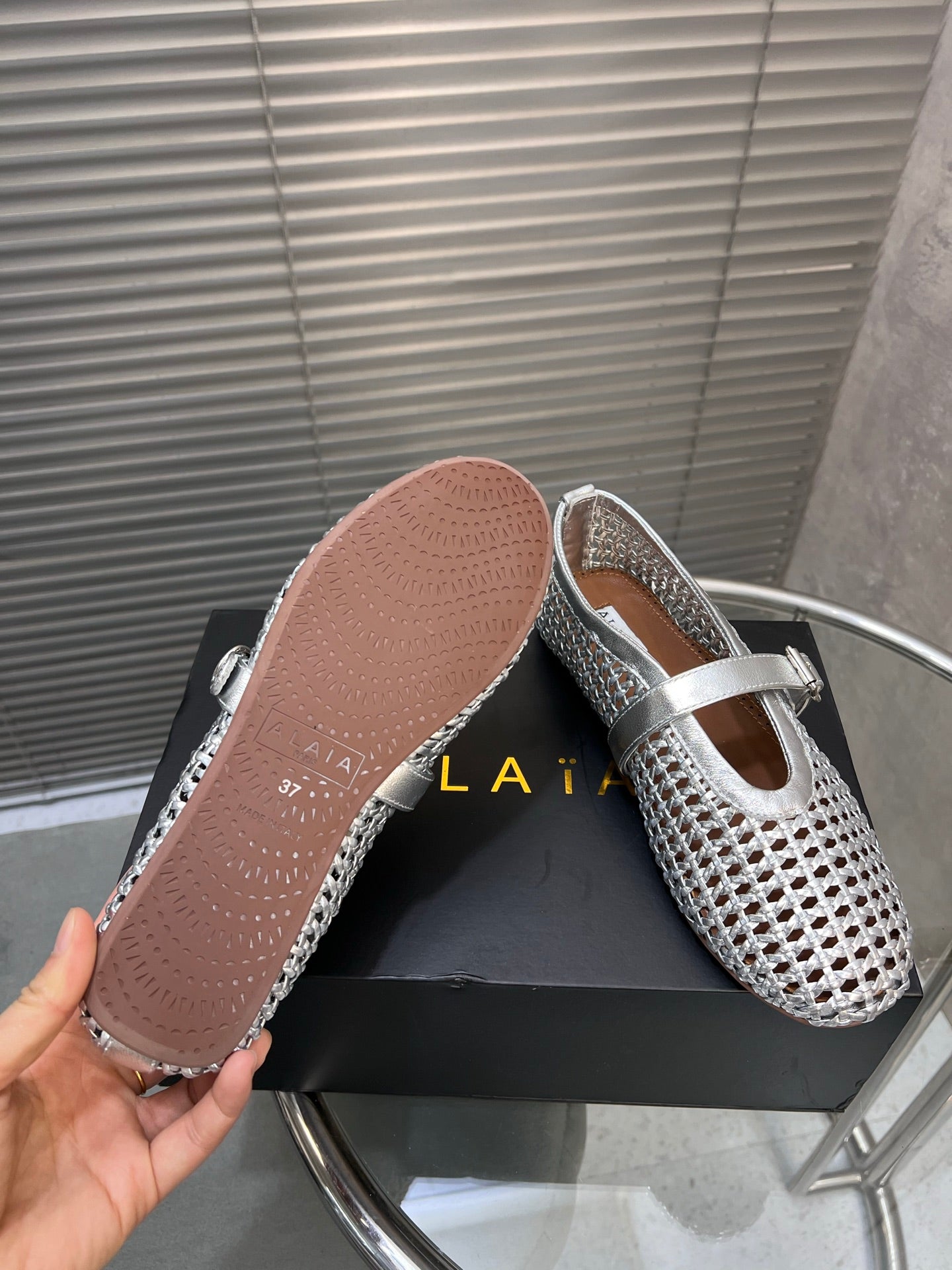 Alaia Braided Hollow Ballet Flats Silver Cowhide 300042