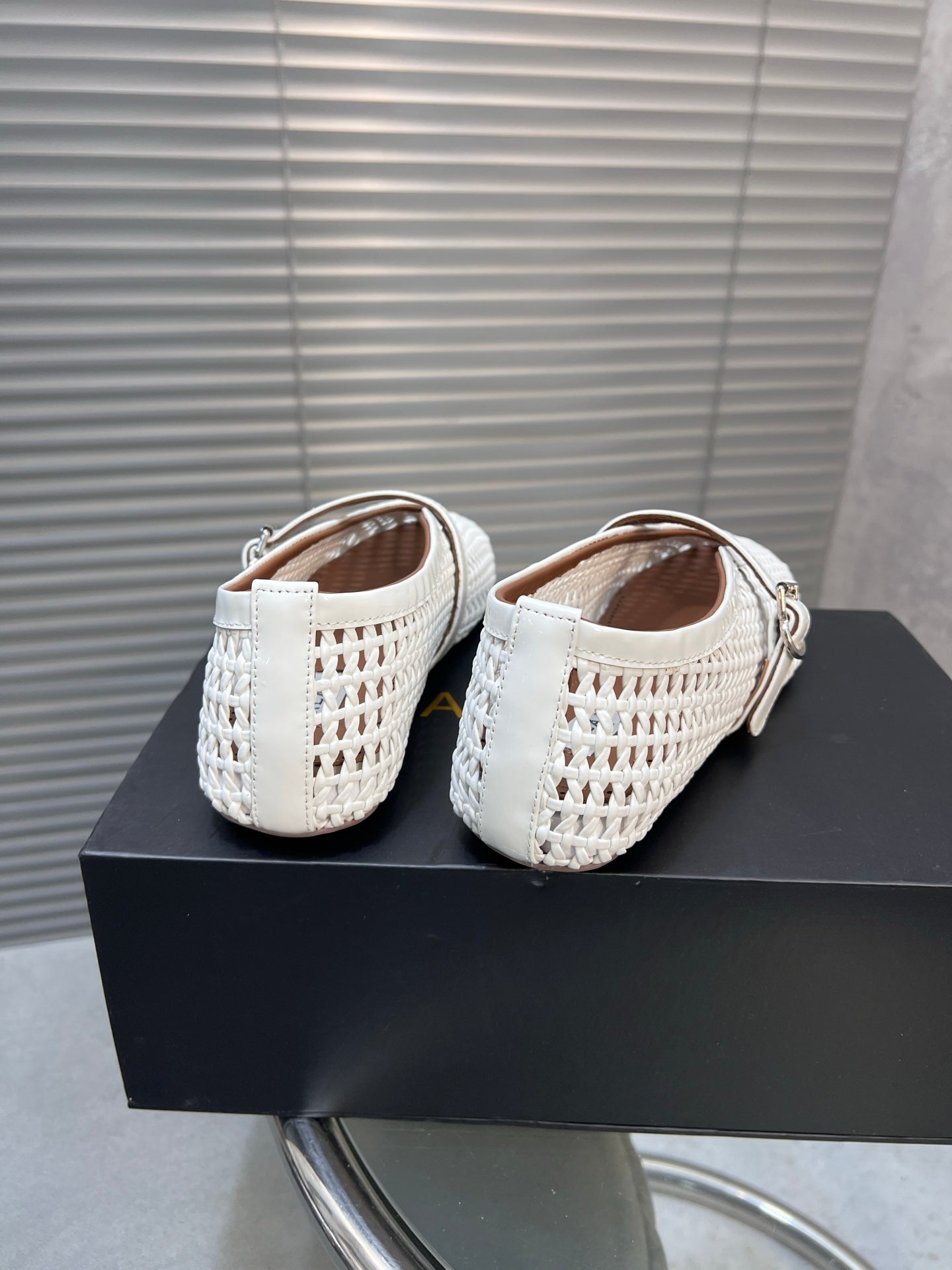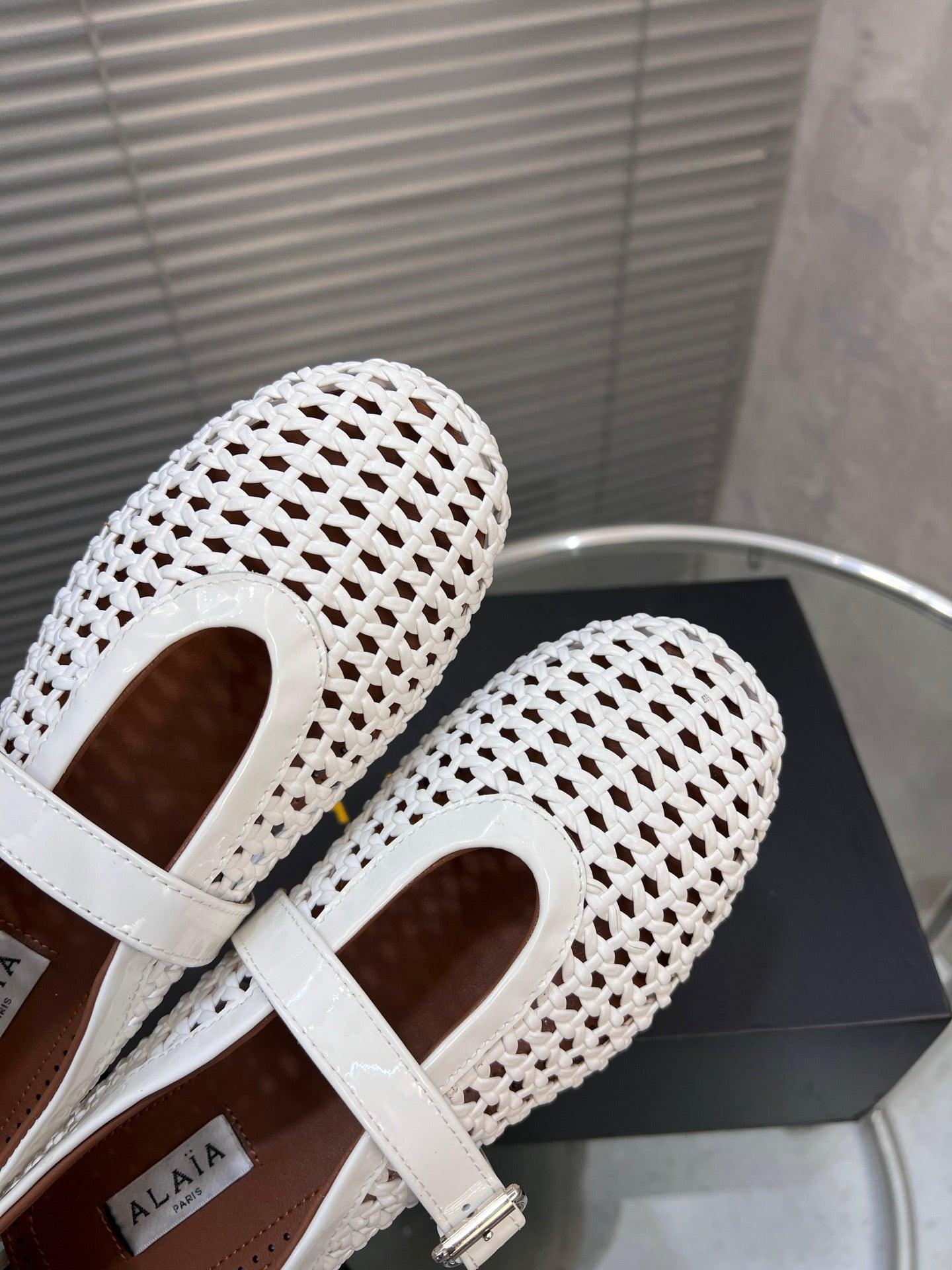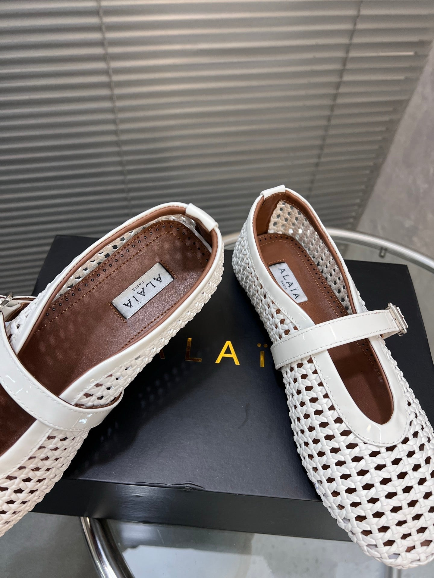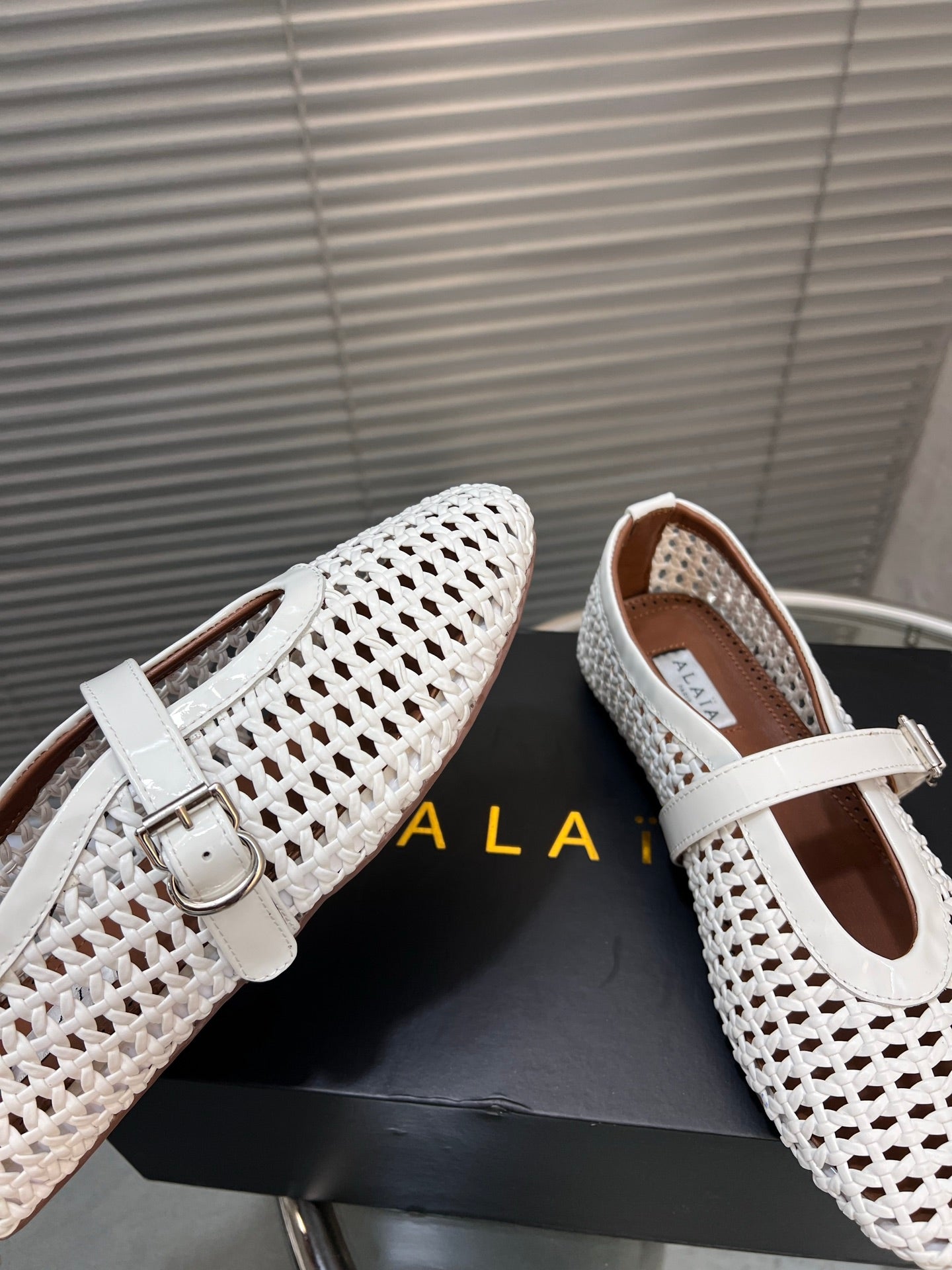 Alaia Braided Hollow Ballet Flats White Cowhide 300044