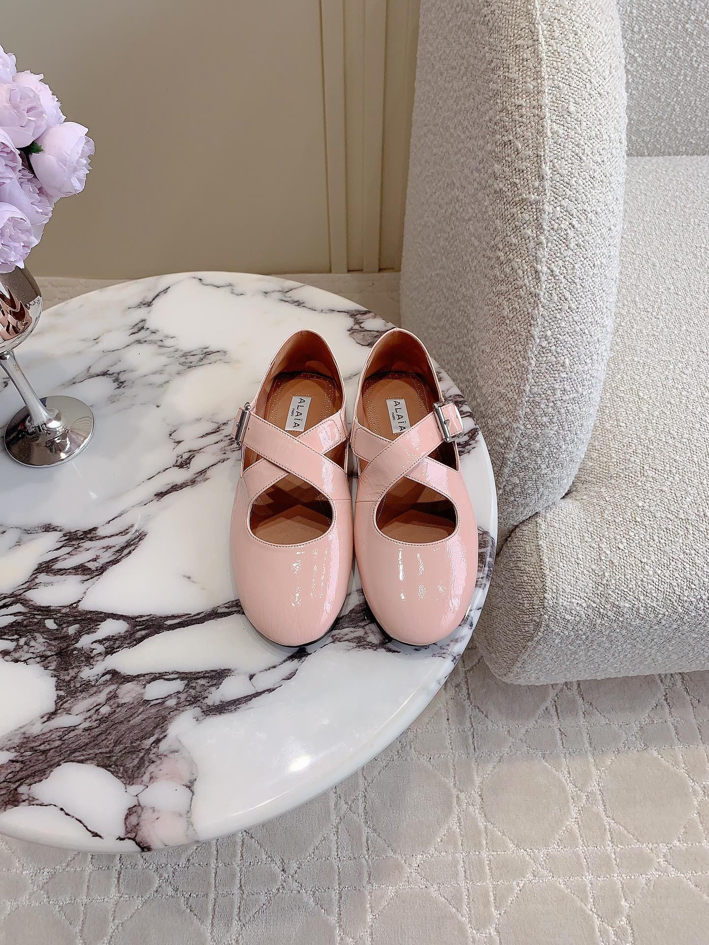 ALAIA CRISS CROSS BALLET FLAT IN BABY PINK LAMBSKIN WITH SILVER HARDWARE