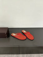 ALAIA FLAT MULES IN CHERRY RED MESH FISHNET