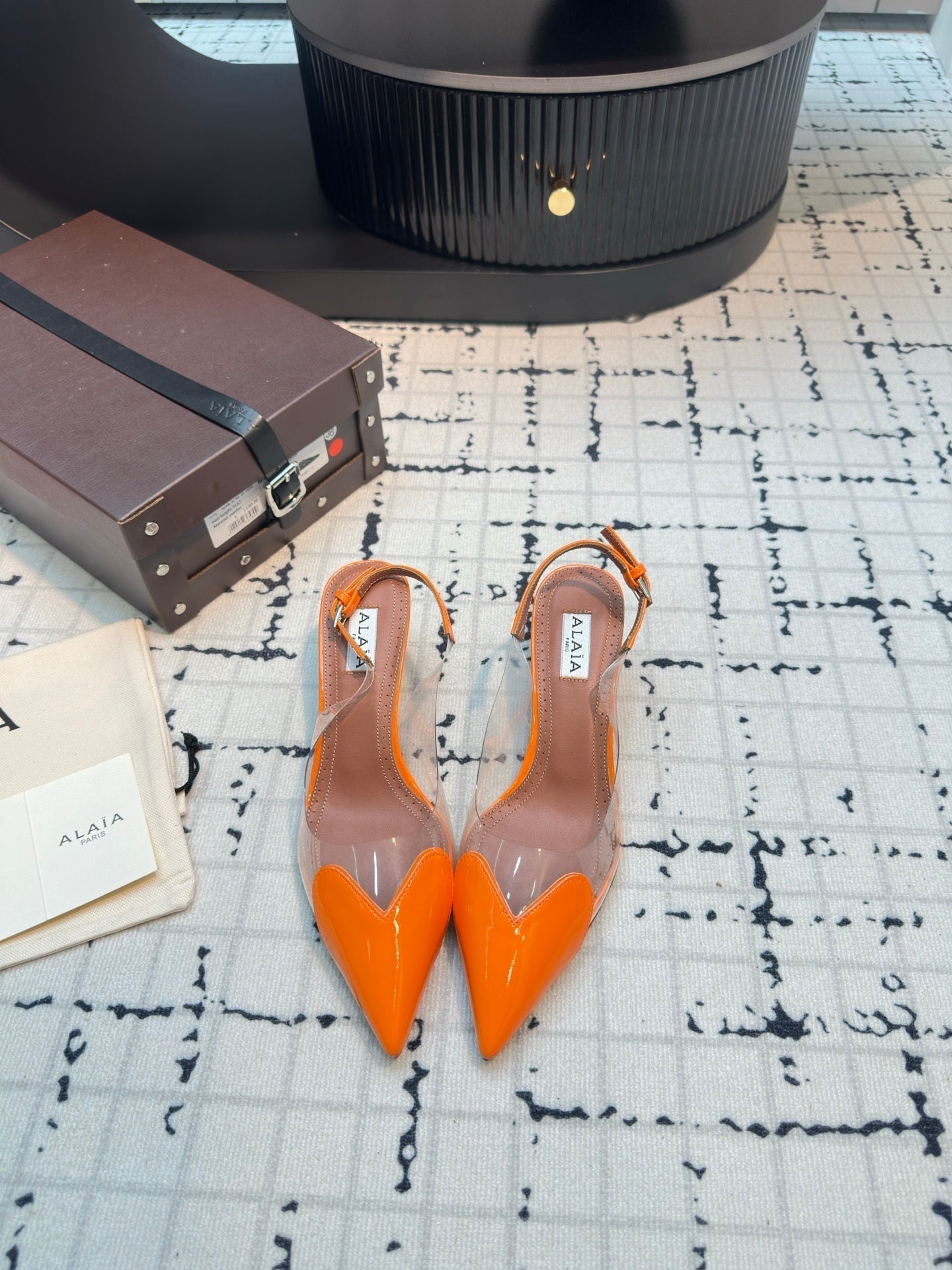 Alaia Heart 50mm Heels Slingbacks Orange Sheepskin 810210