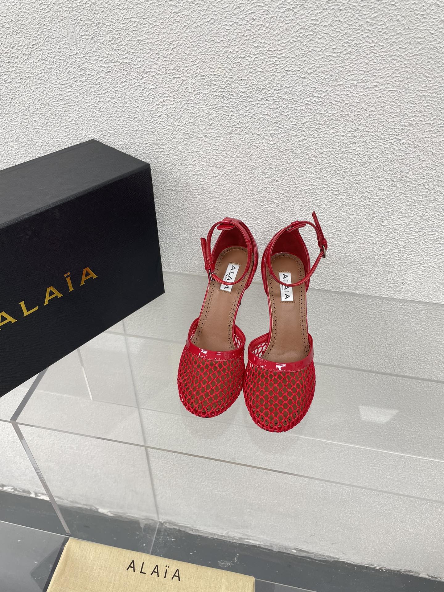 ALAIA HIGH FISHNET 9 CM PUMPS IN CHERRY RED MESH