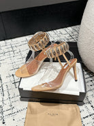 ALAIA HIGH SANDAL IN BEIGE CALFSKN AND FILM WITH CRYSTAL