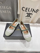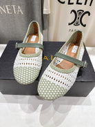 ALAIA MARY JANE FLATS soft green and white woven calfskin pattent