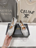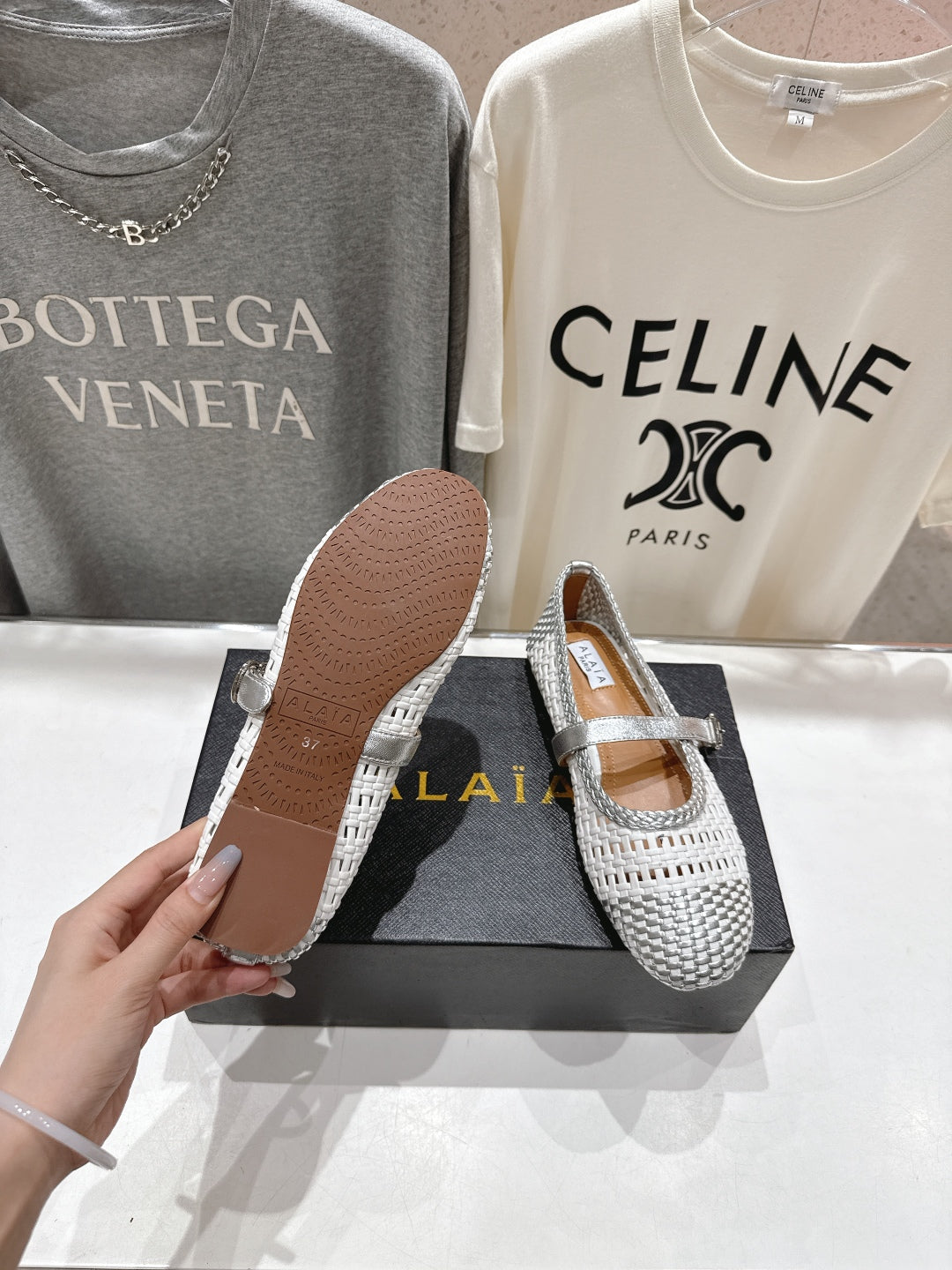 ALAIA MARY JANE FLATS white mix gray woven calfskin pattent