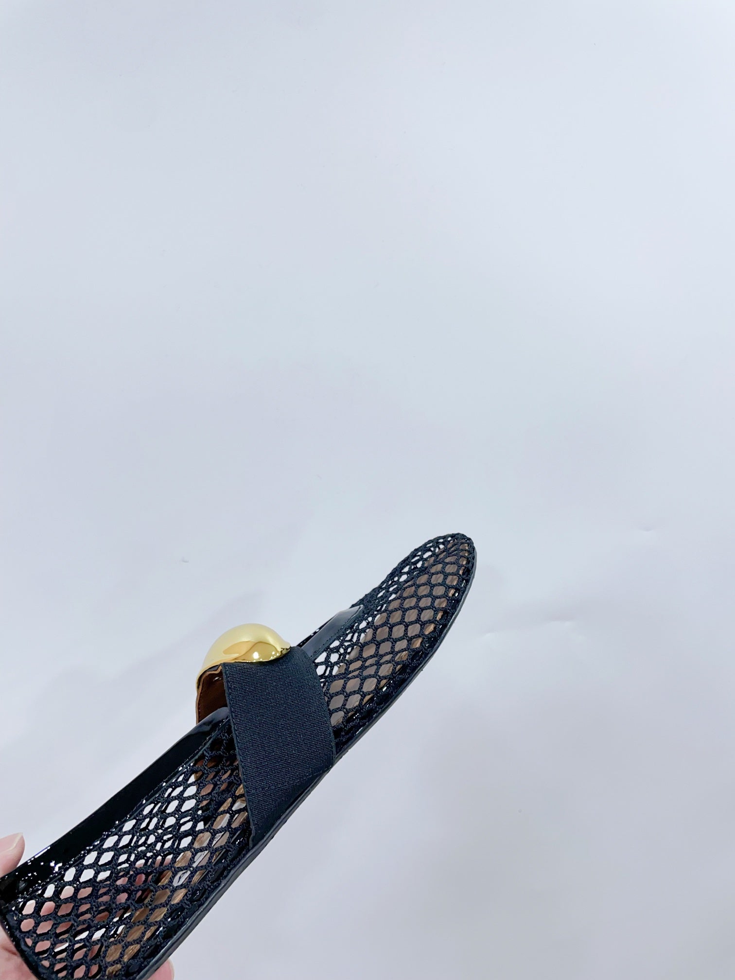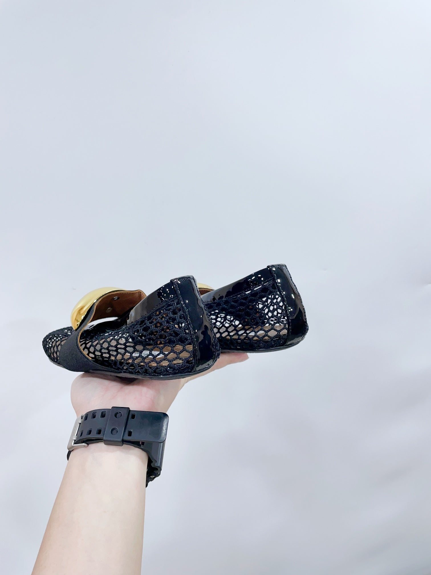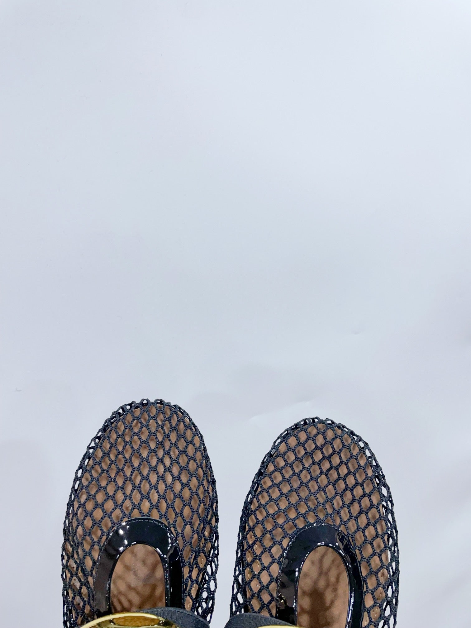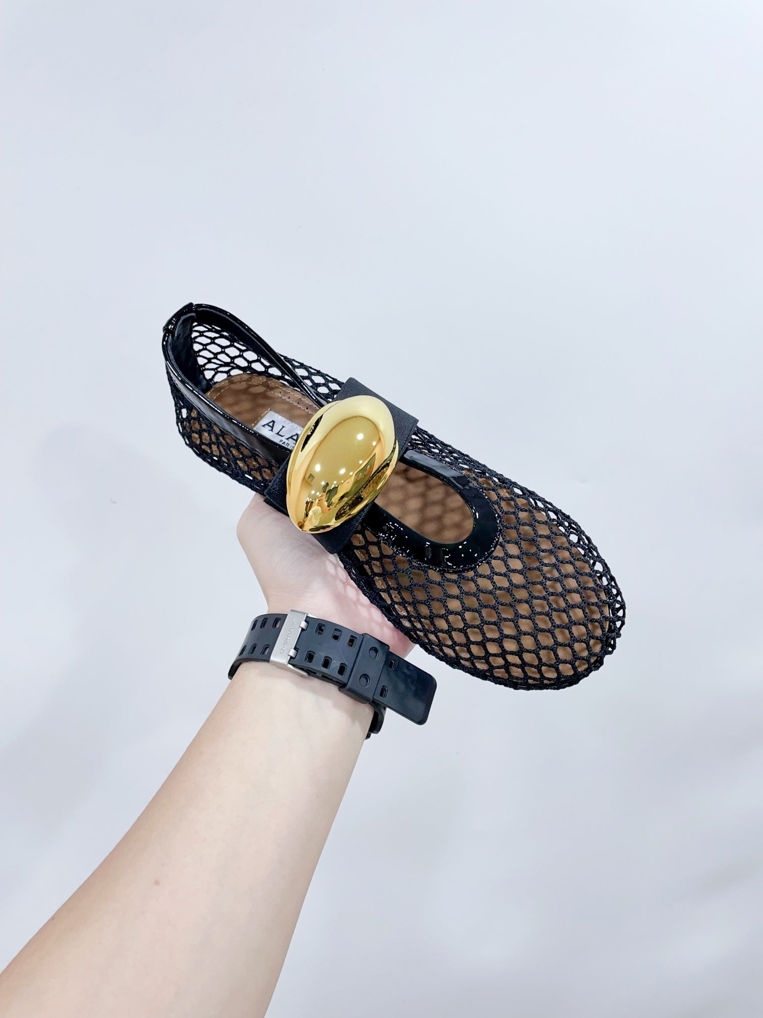 ALAIA MARY JANE SHOES IN BLACK MESH WITH GOLD HARDWARE