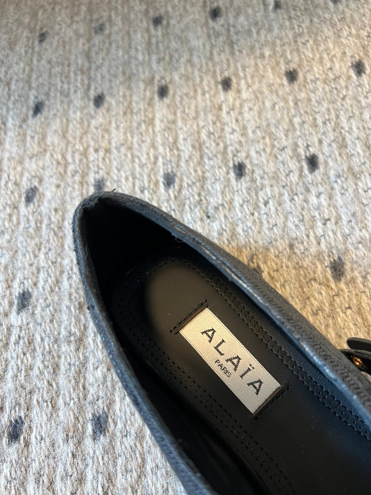 ALAIA MARY JANE SHOES IN BLACK ZP CUSTOM STRAW AND DENIM