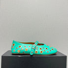 ALAIA MARY JANE SHOES IN GREEN MINT LAMBSKIN GOLD MIX SILVER HARDWARE