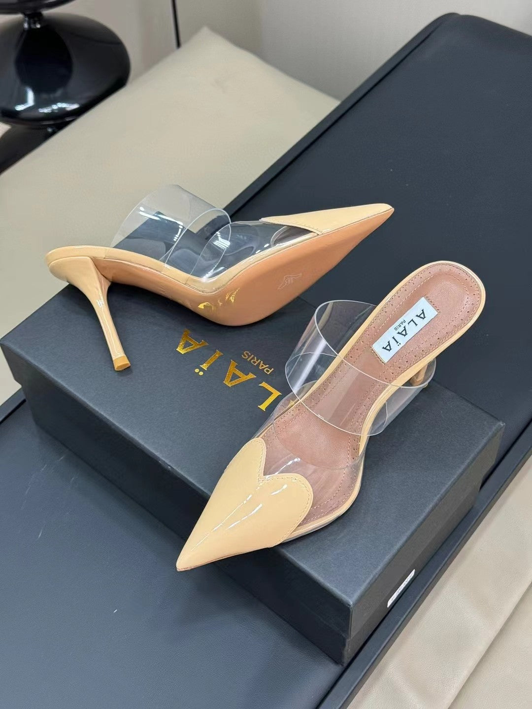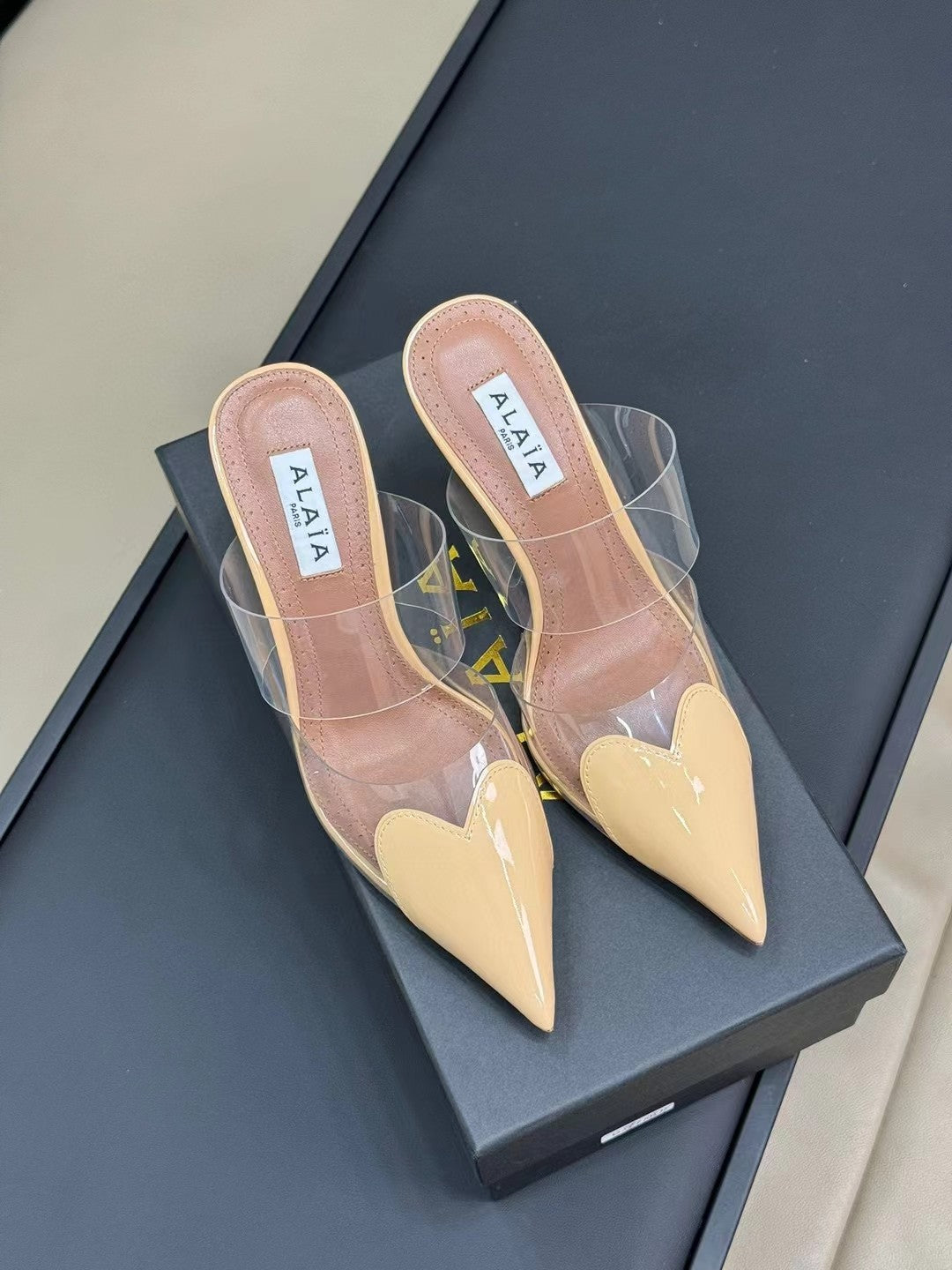 alaia mule 90 optic beige heart lambskin