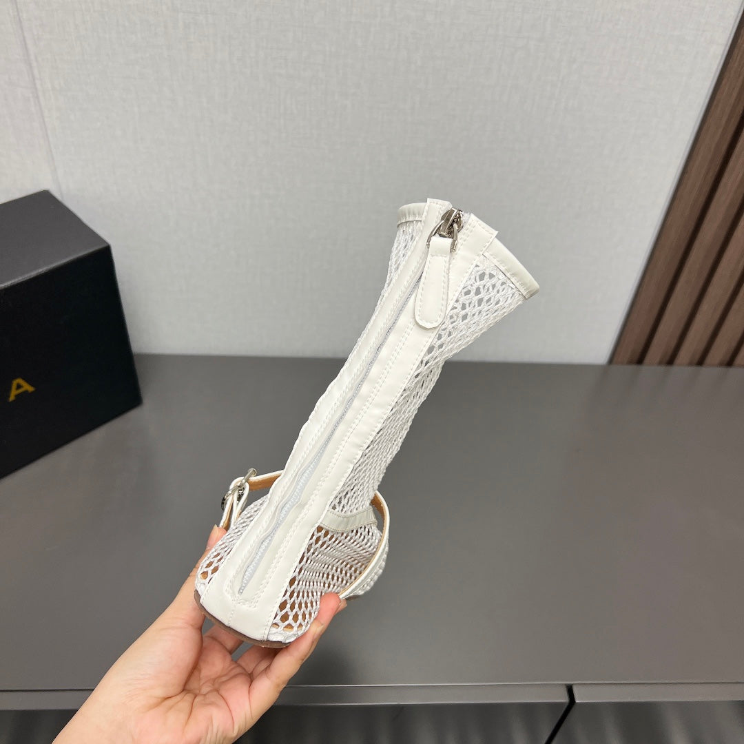 ALAIA SHORT BOOTS IN WHITE MESH FISHNET