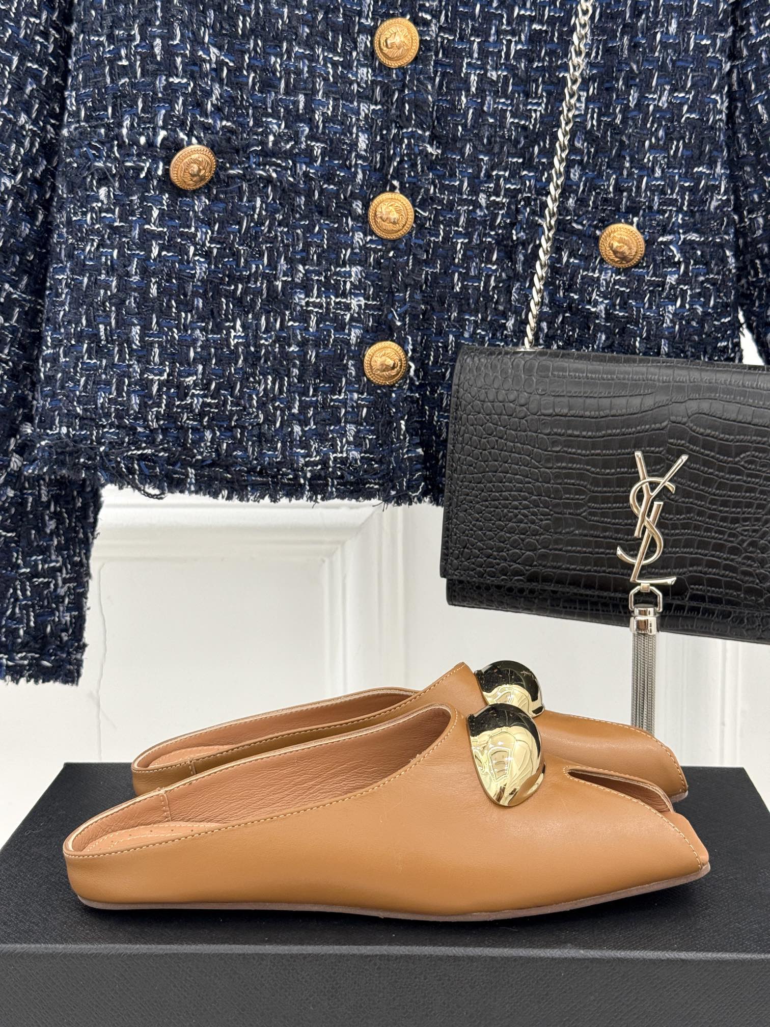 Alaia Slipper With Gold Hardware Brown Calfskin 293202