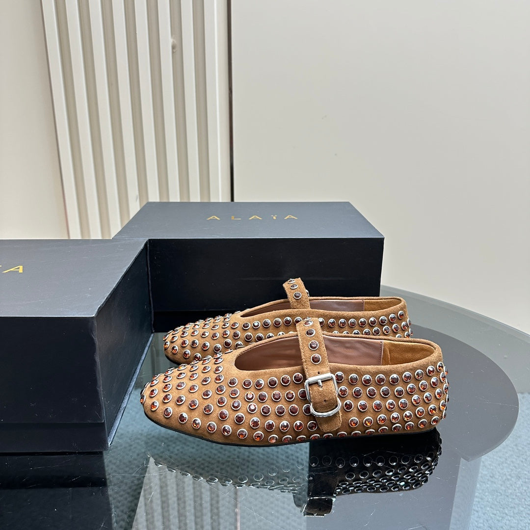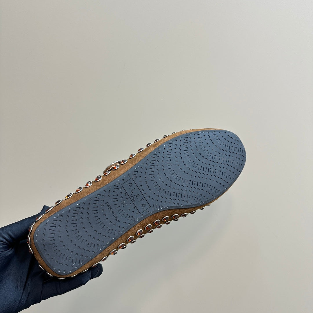 Alaia Strass Suede Ballet Flats In Brown 999324