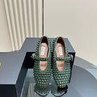 Alaia Strass Suede Ballet Flats In Dark Green 999318