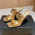 ALAIA TWO-STRAPS HIGH HEEL SANDALS IN GOLDEN PATENT LAMBSKIN
