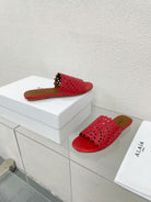 ALAIA VIENNE FLAT MULES IN CHERRY RED LAMBSKIN