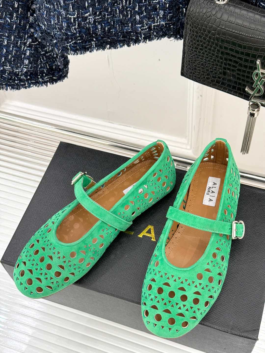 Alaia Women's Ballet Flat Shamrock Green Suede 293221