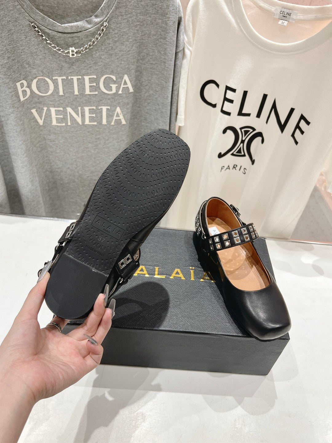 Alaila Biker Ballet Flats In Black Cowhide 911434