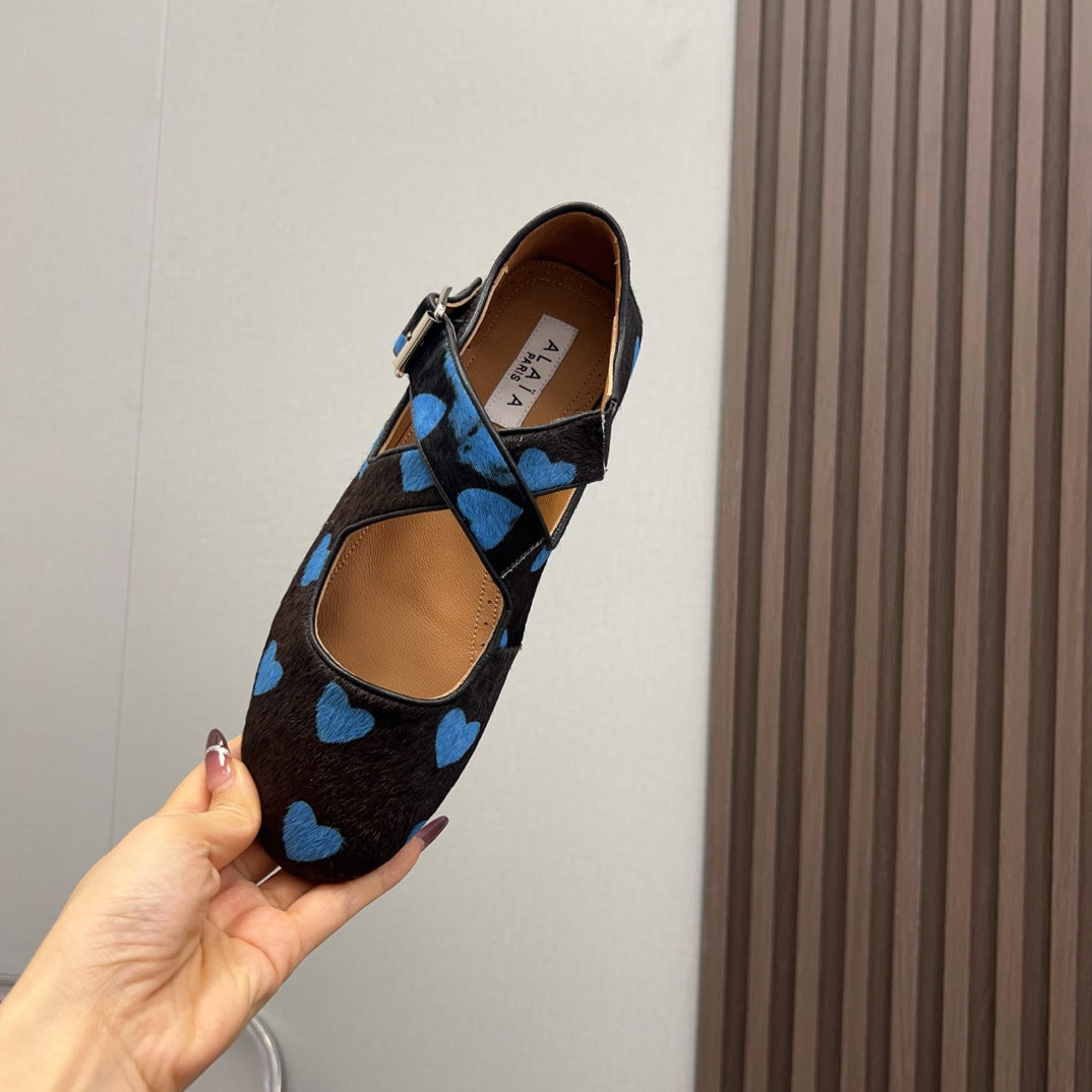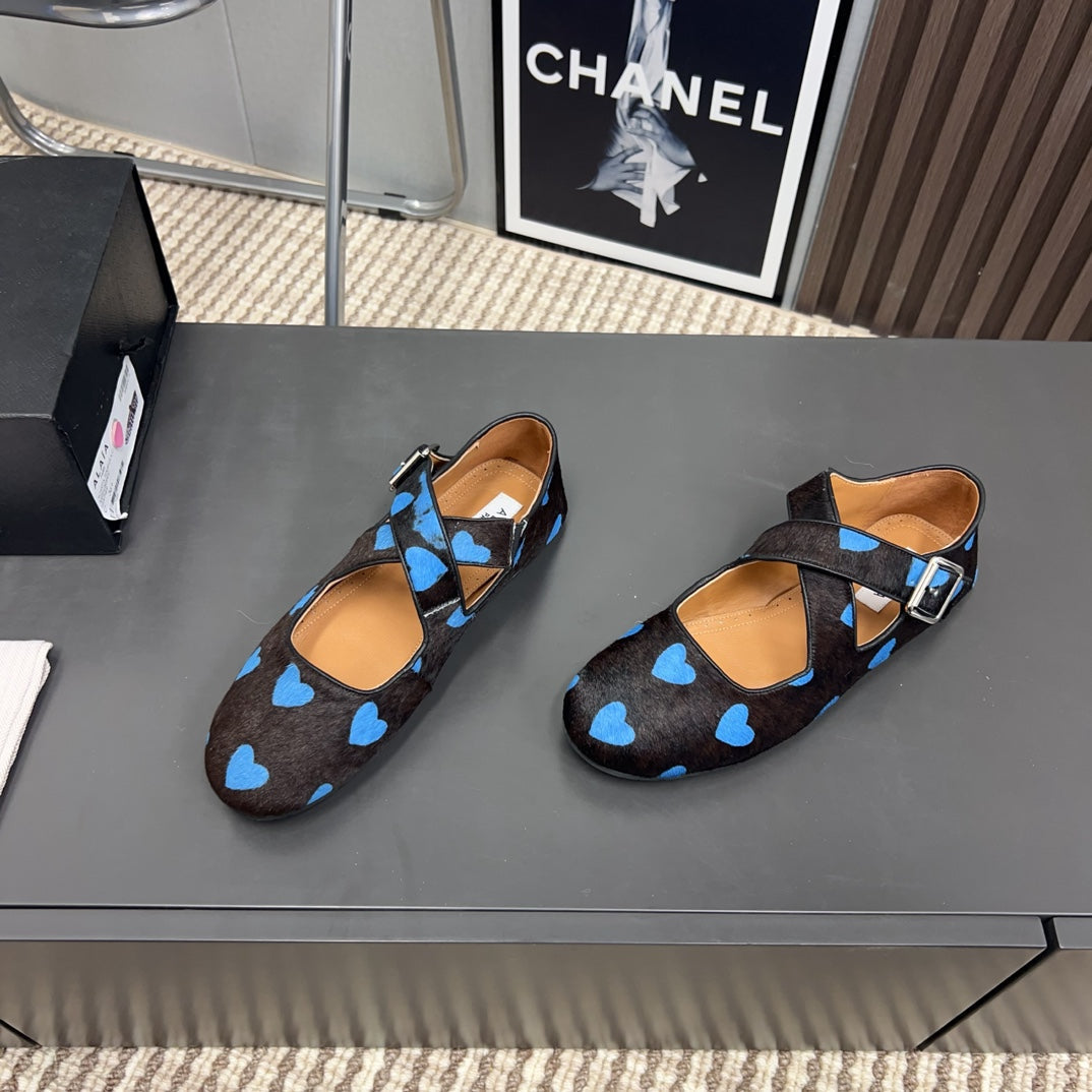 Alaila Criss Cross Ballet Flats In Black Lambskin 996063
