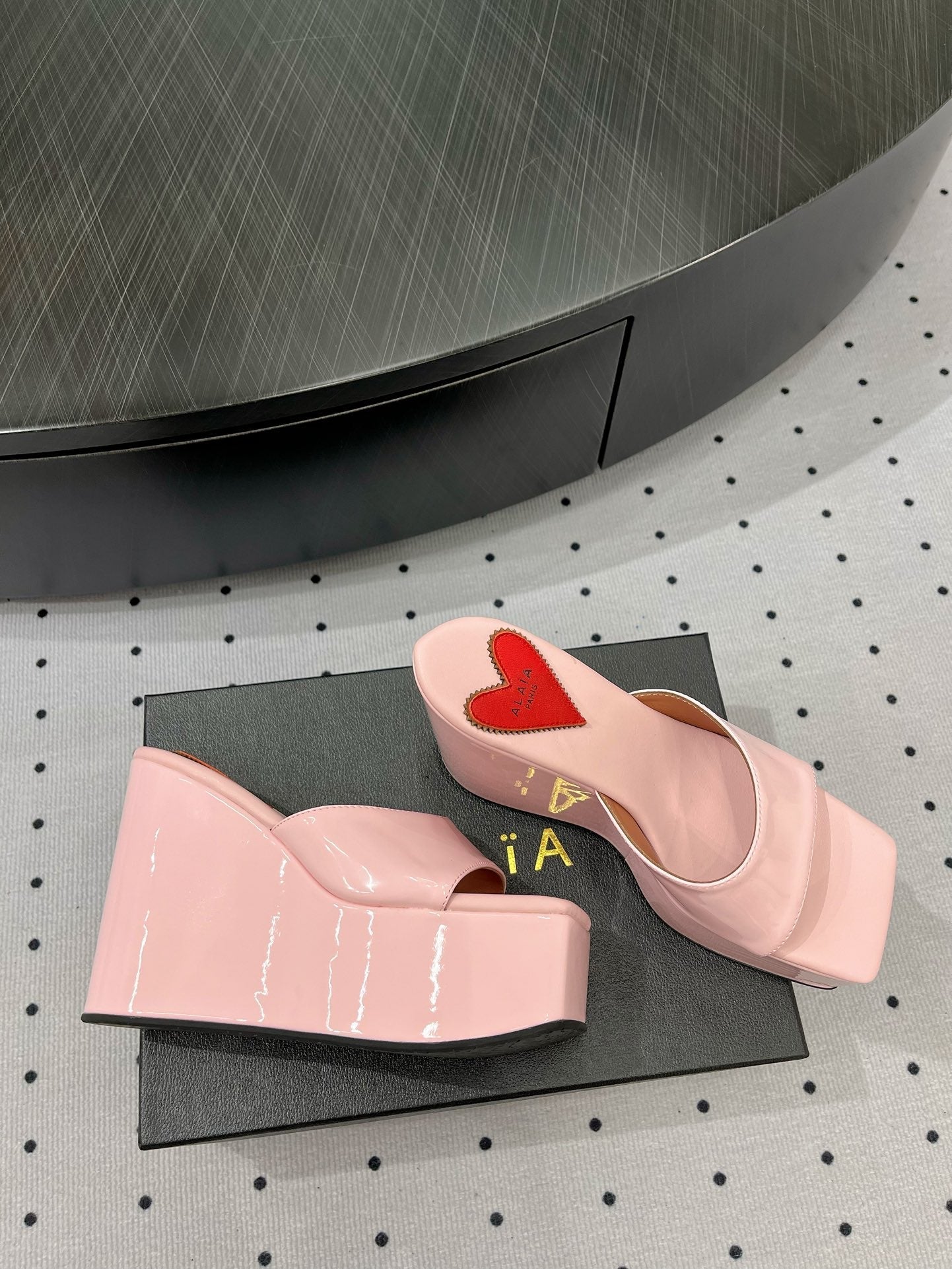 Alaila High Sandal 115mm In Pink Glossy Lambskin 954876