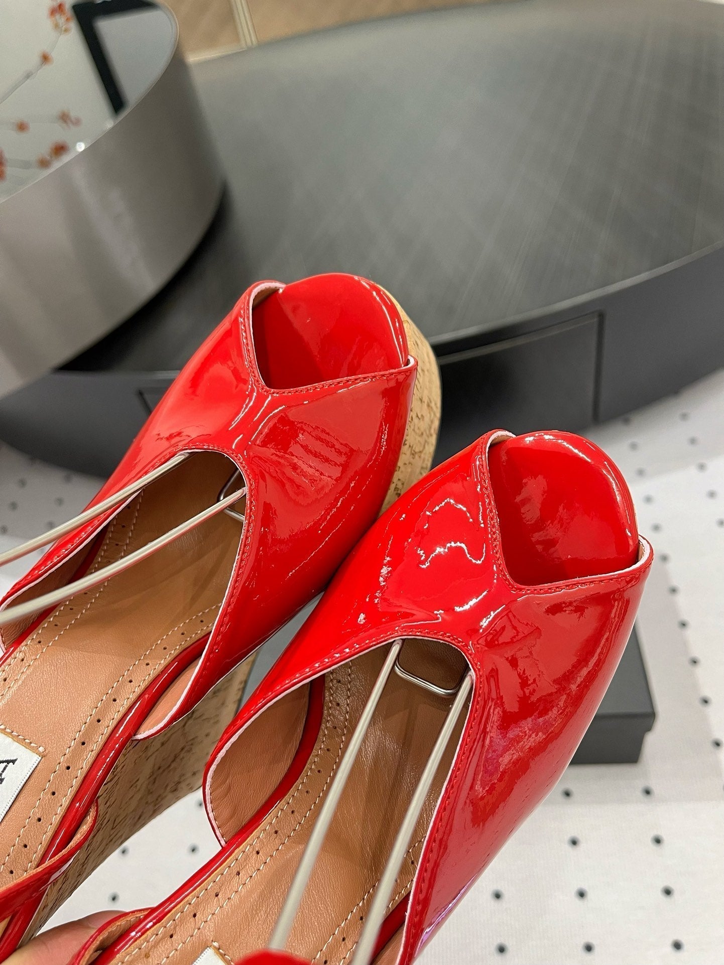 Alaila Wedge Sandals 135mm In Red Glossy Lambskin 954901