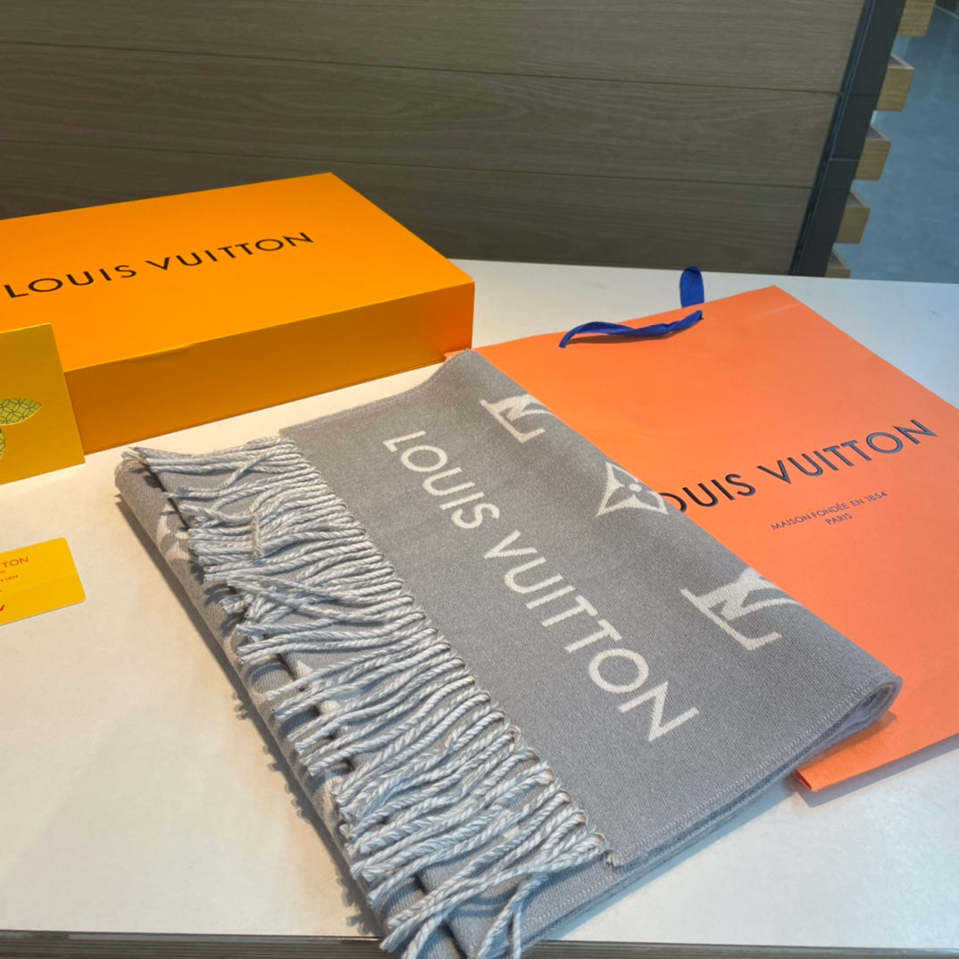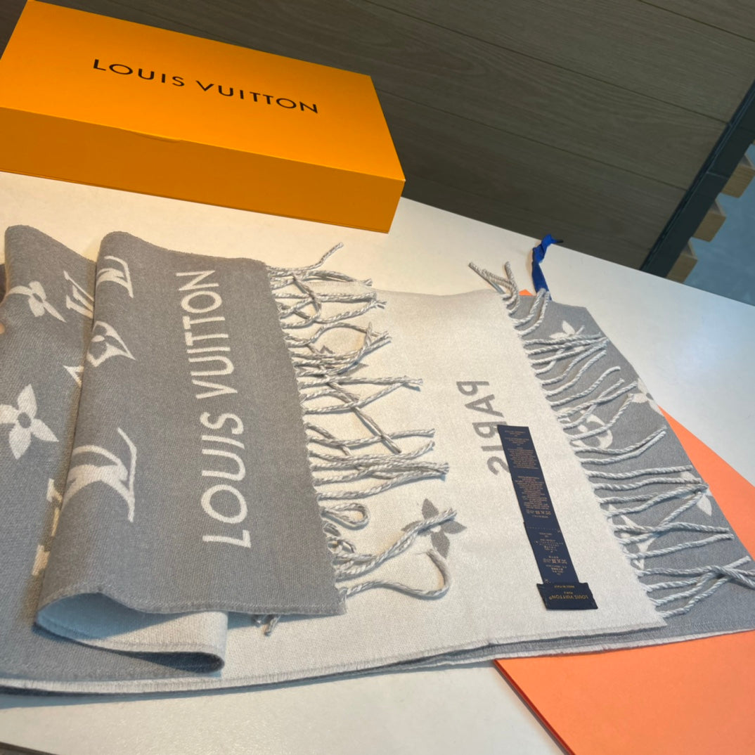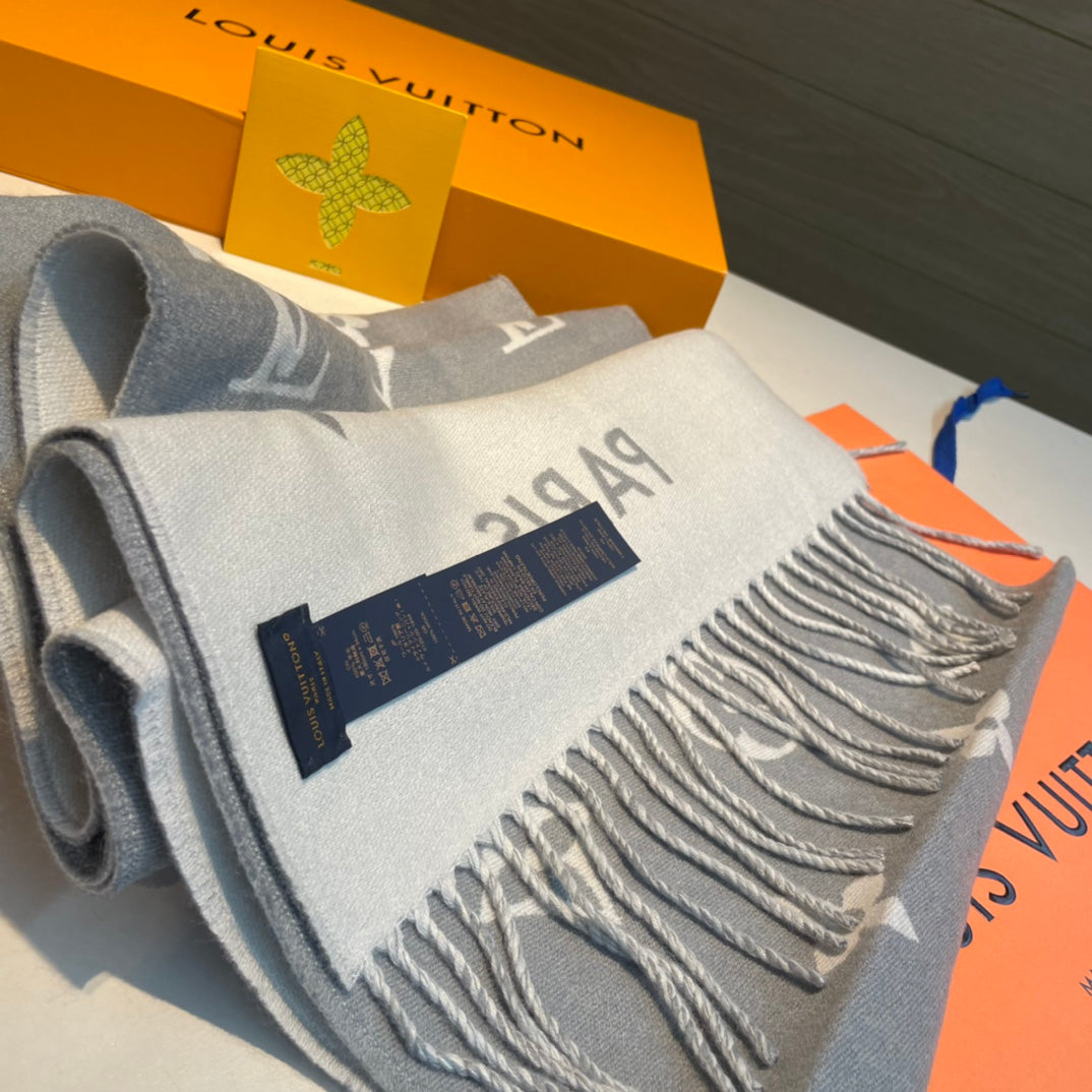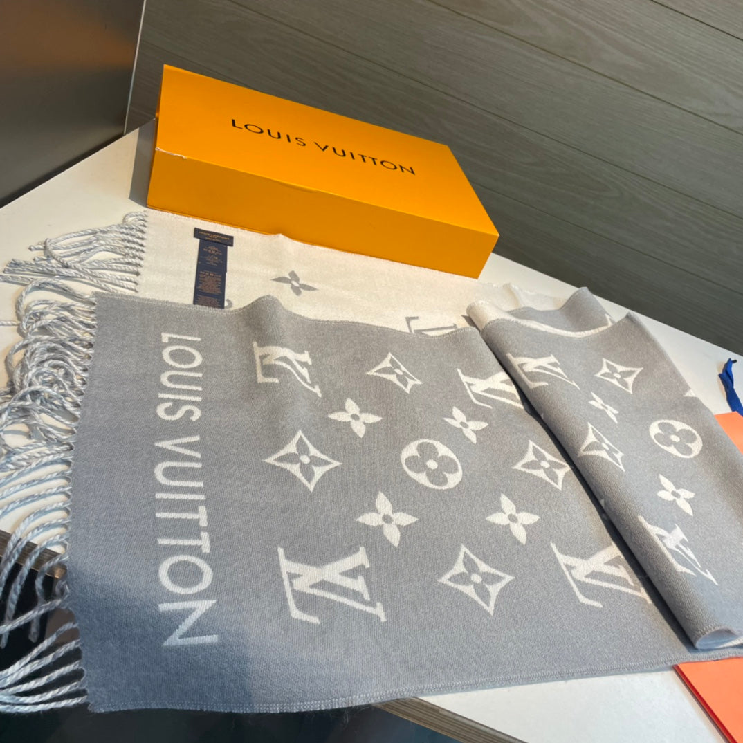 ALL ABOUT MONOGRAM SCARF 185 CM IN LIGHT GRAY WOOL 394498
