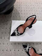 Amina & Muaddi 25 Slingback Black Silk Sheepskin