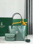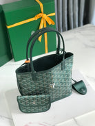 ANJOU MINI BAG 20 IN GREEN CALFSKIN AND GOYARDINE CANVAS