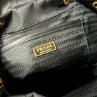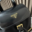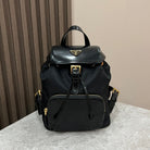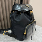 BACKPACK 25 IN BLACK RE-NYLON AND GLOSSY CALFSKIN GOLD HARDWARE