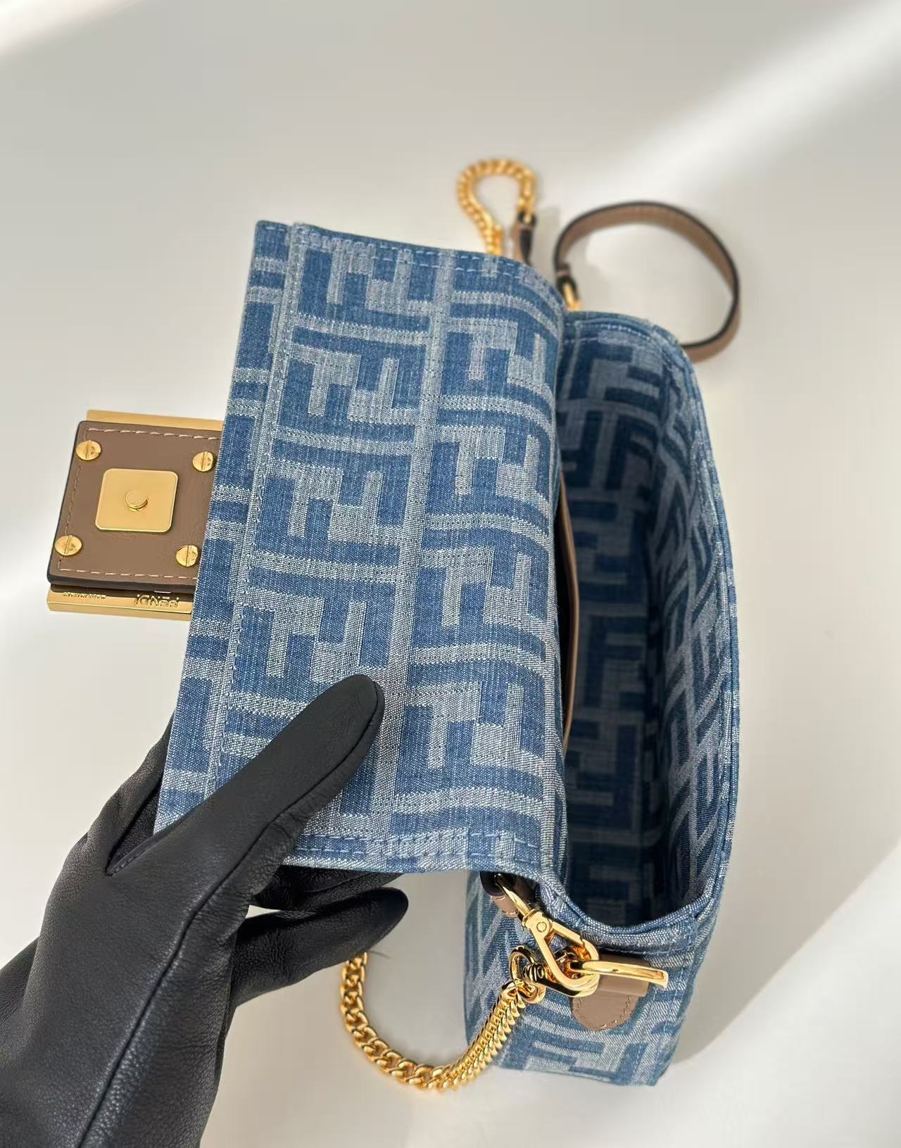 BAGUETTE MINI 19 BAG IN CERULEAN BLUE MONOGRAM DENIM WITH GOLD HARDWARE