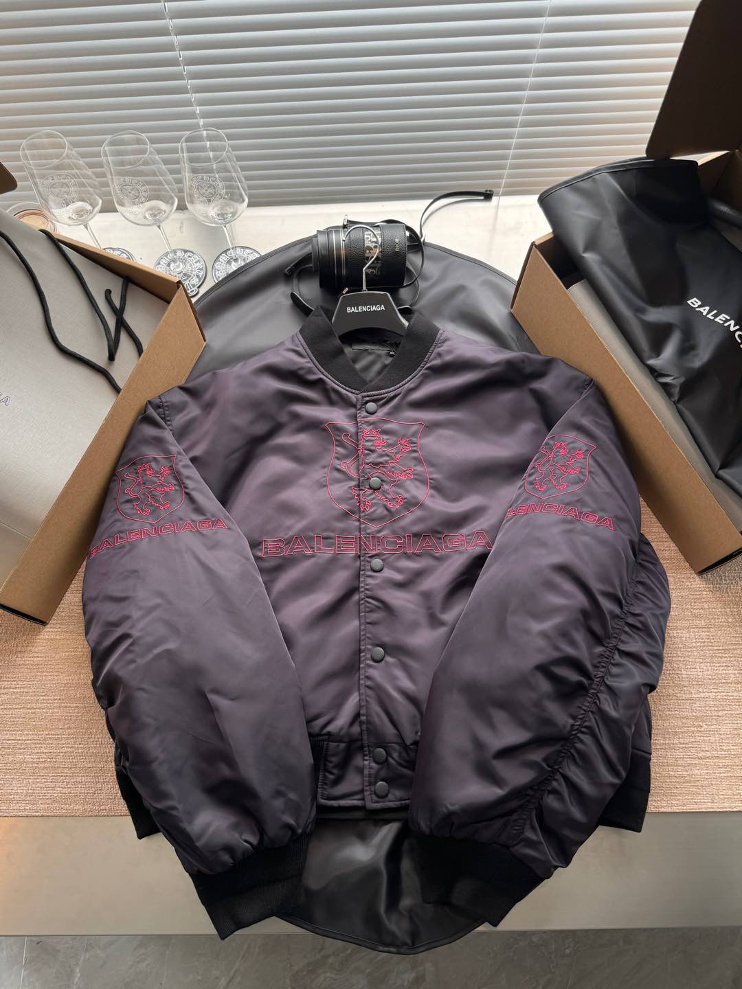 Balenciaga 25 Down Jackets Charcoal Purple Polyester 0028