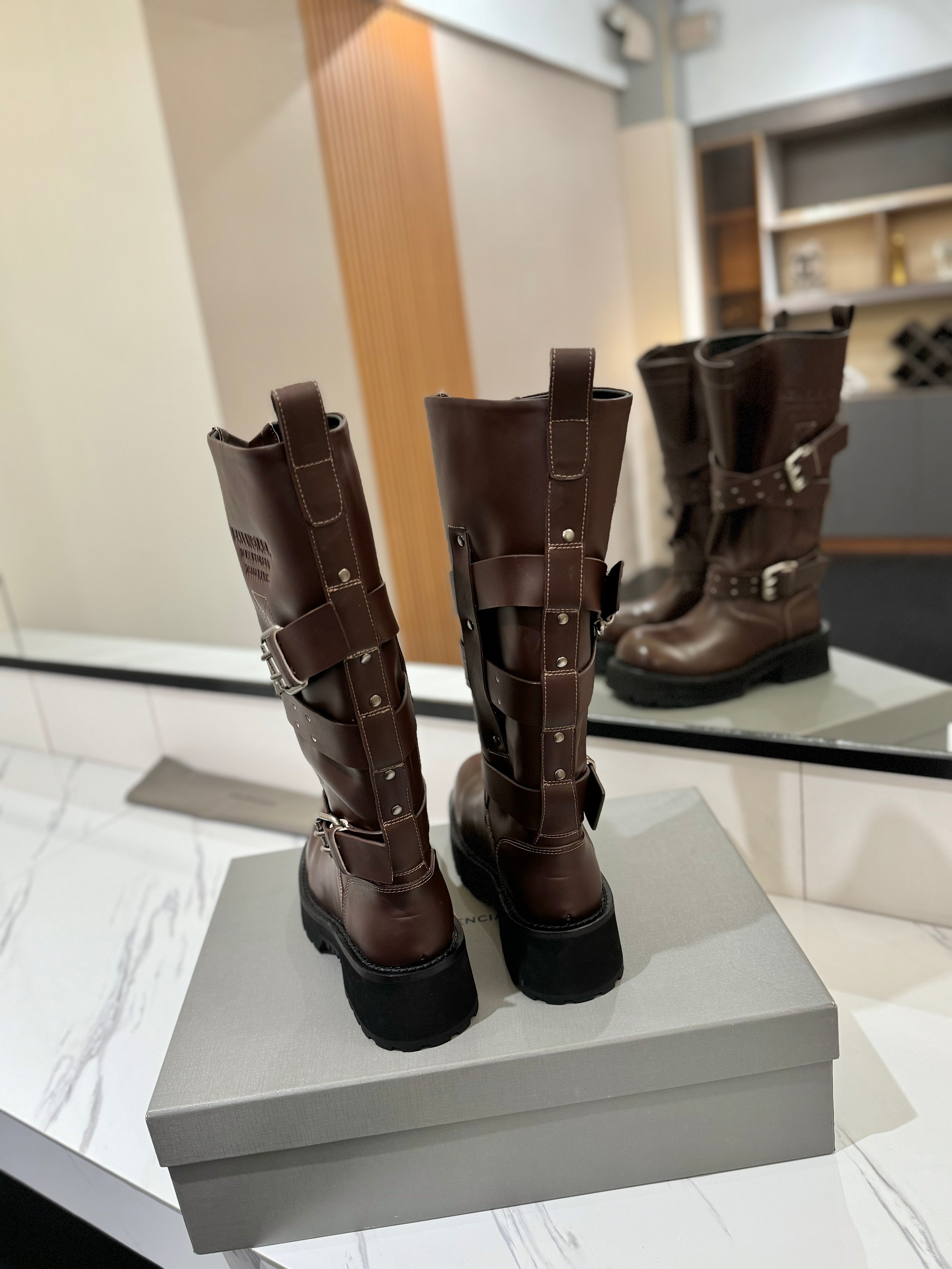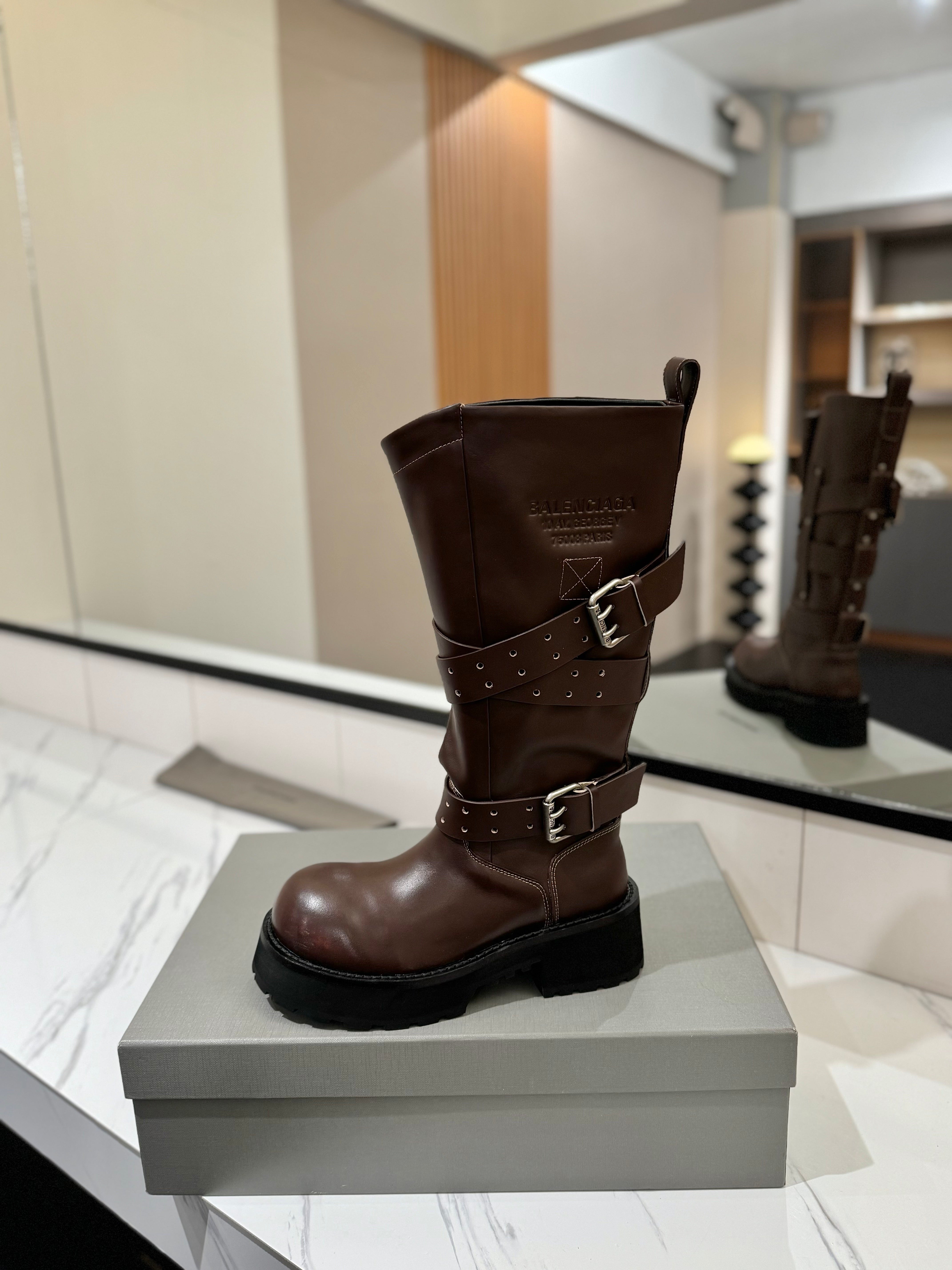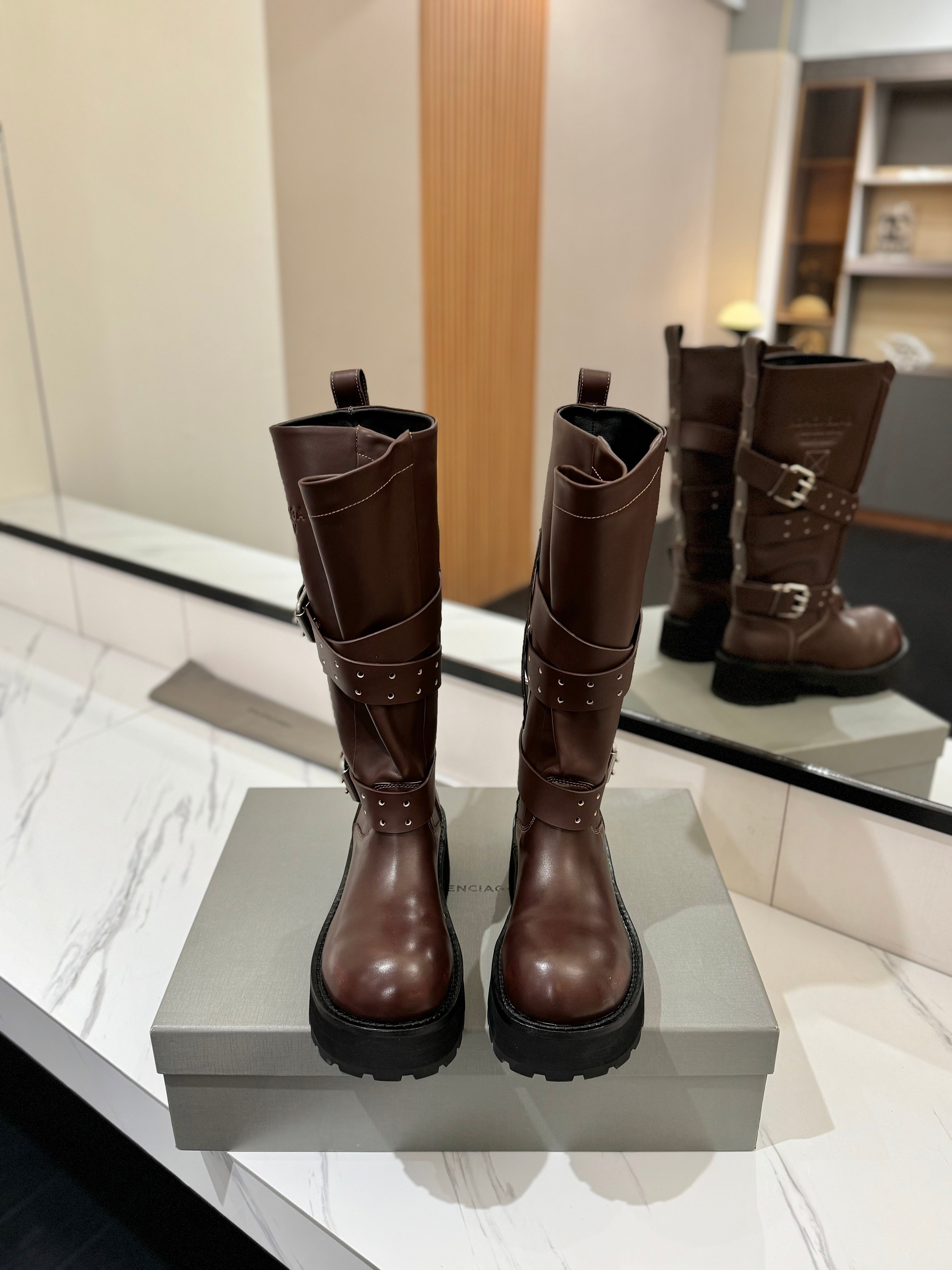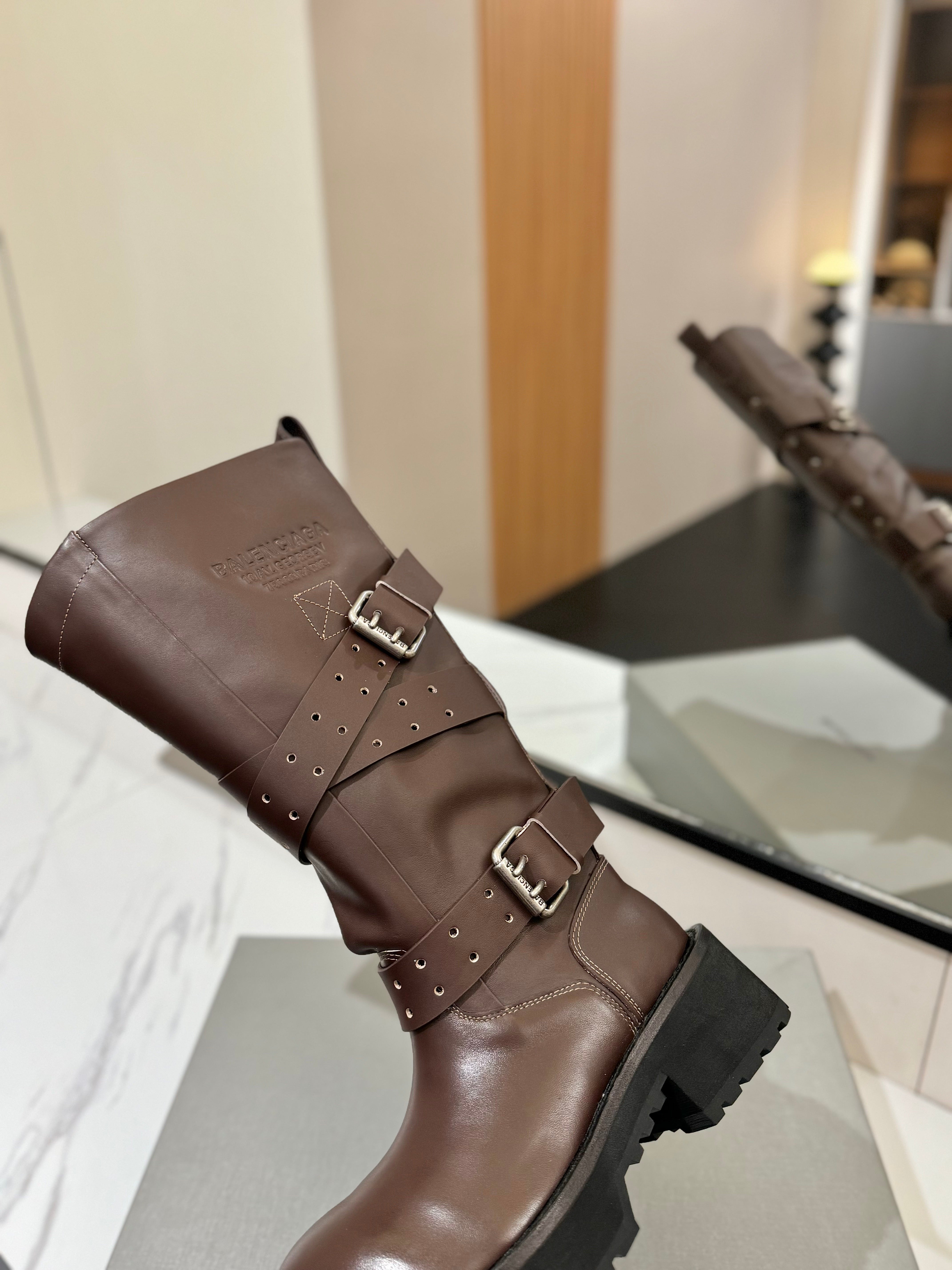 Balenciaga 25s buckled high boots brown calfskin 467612