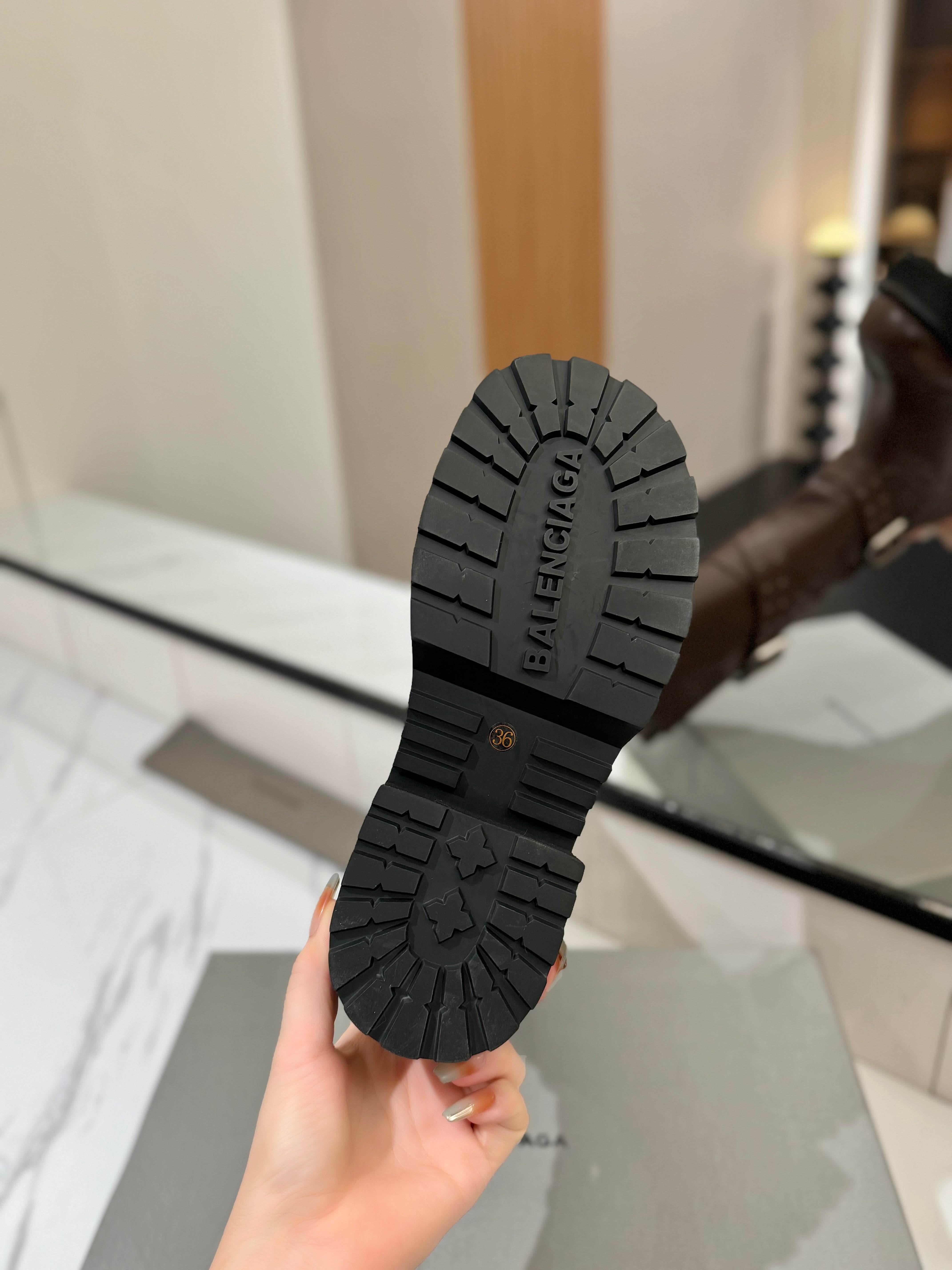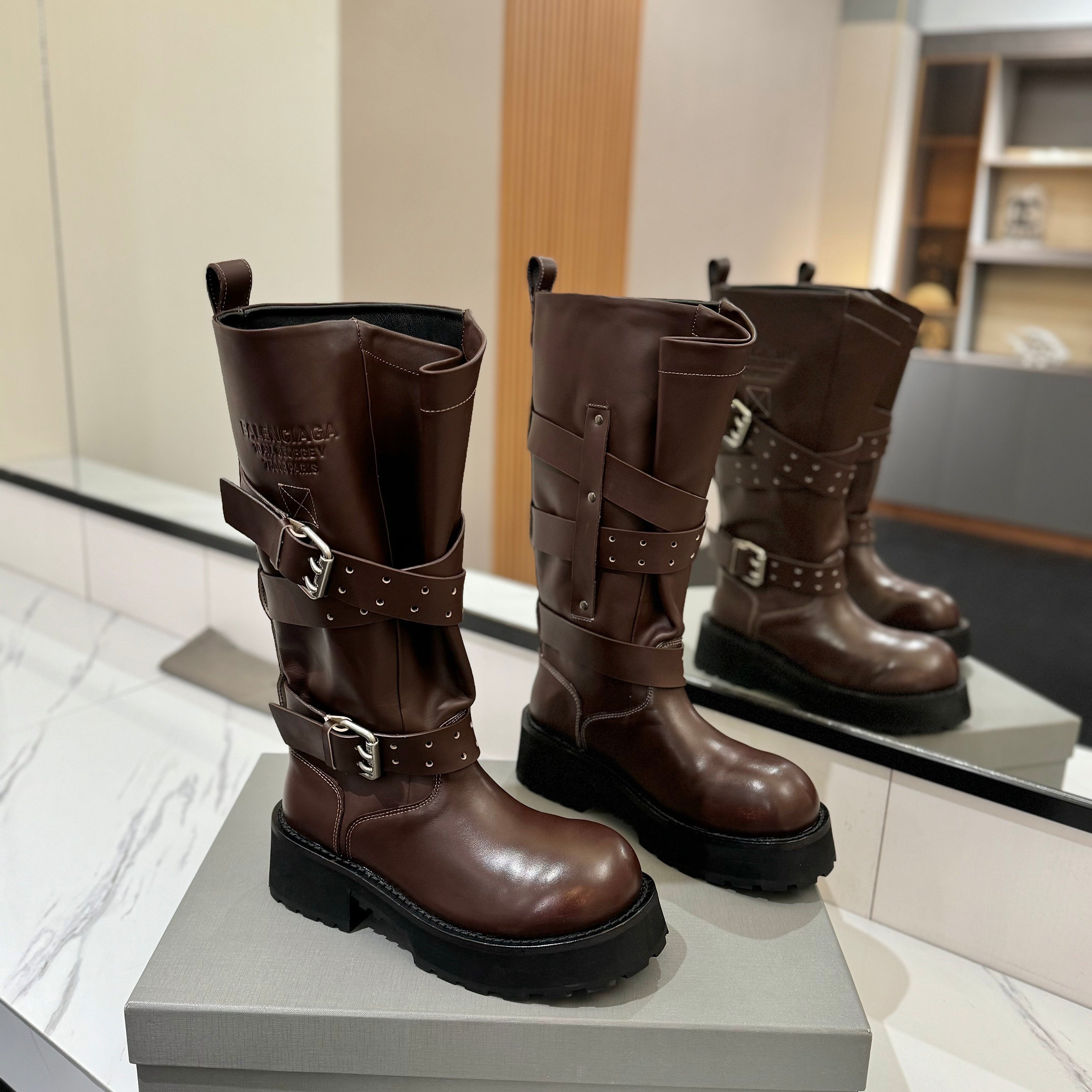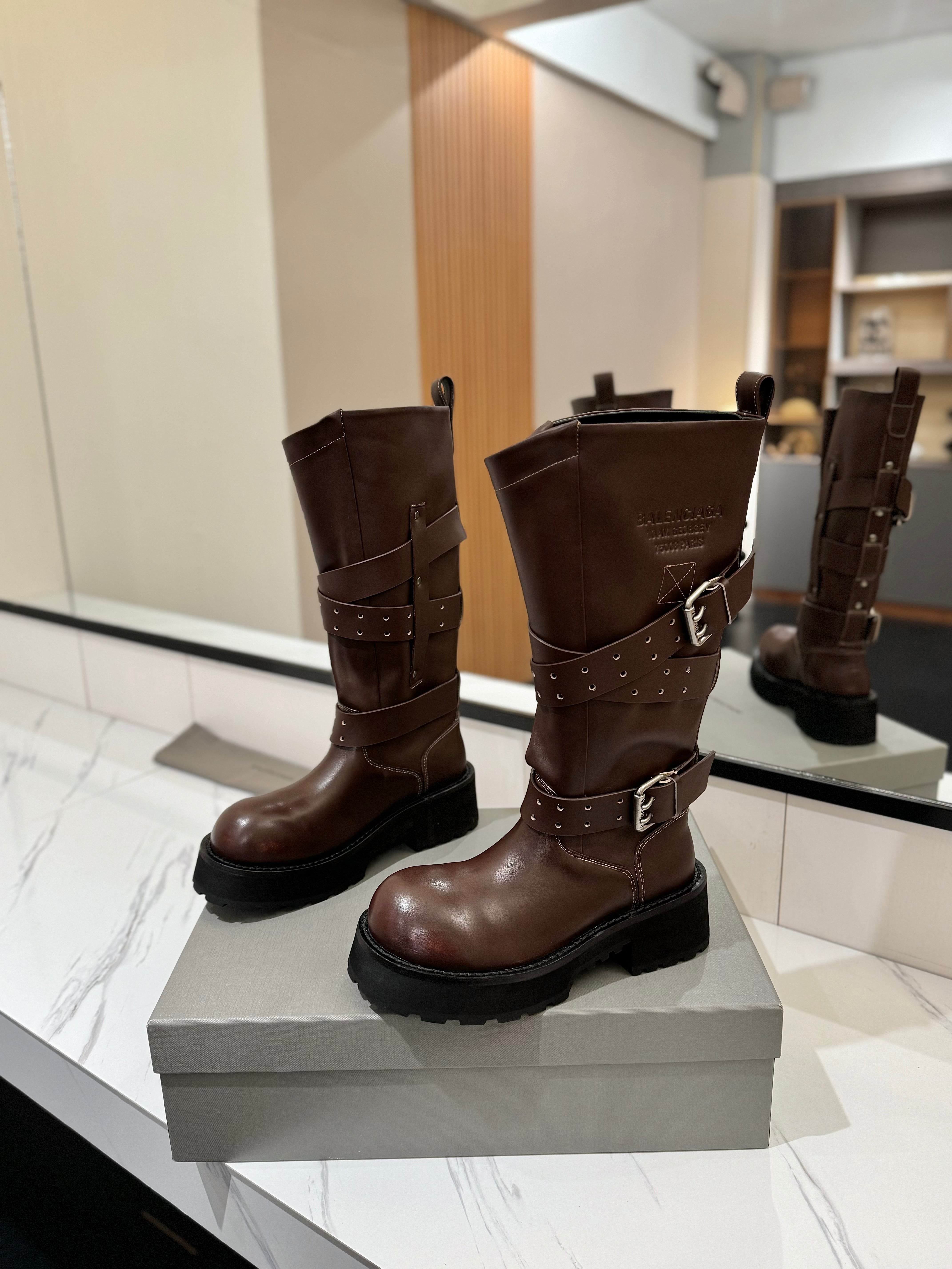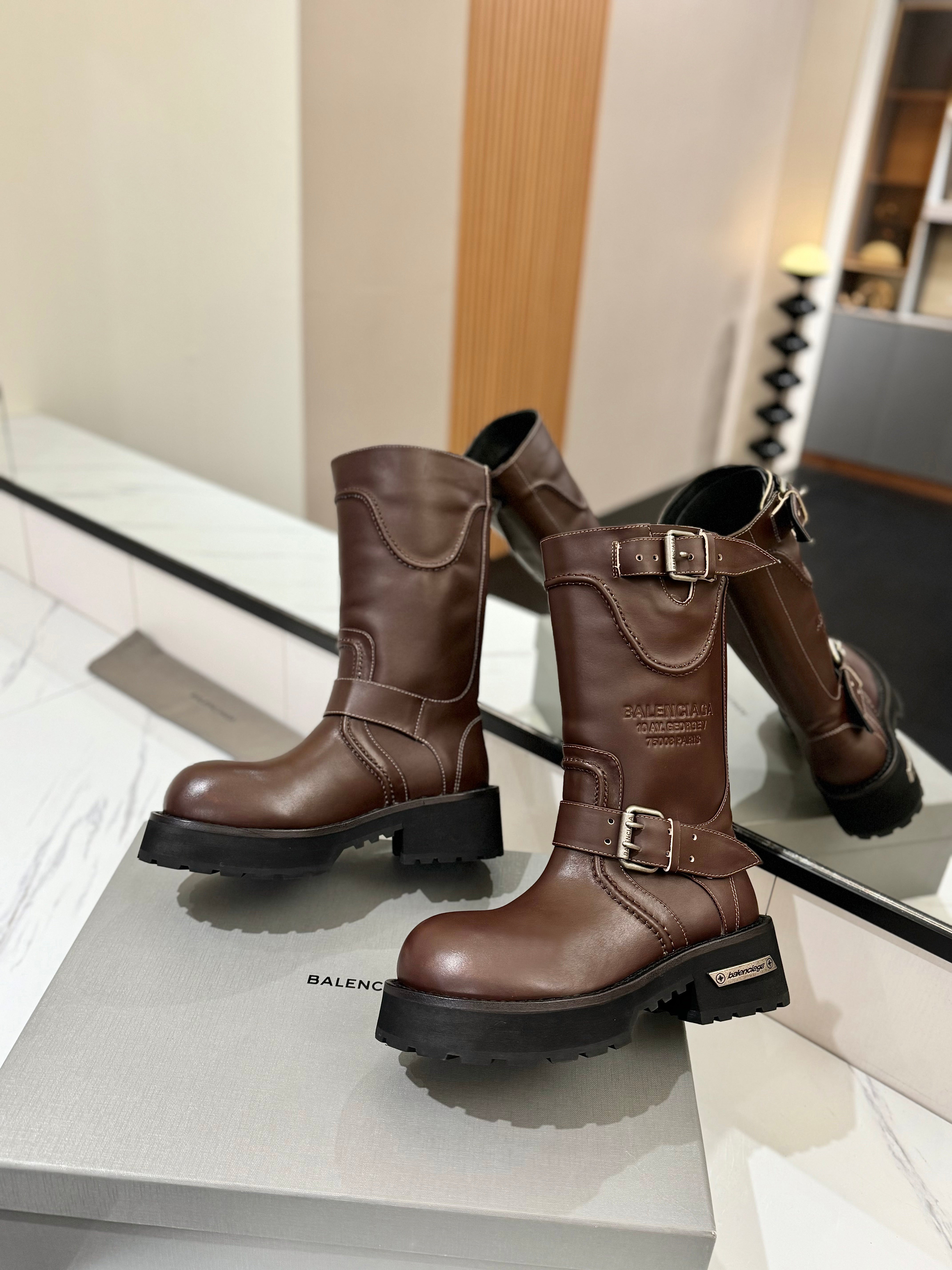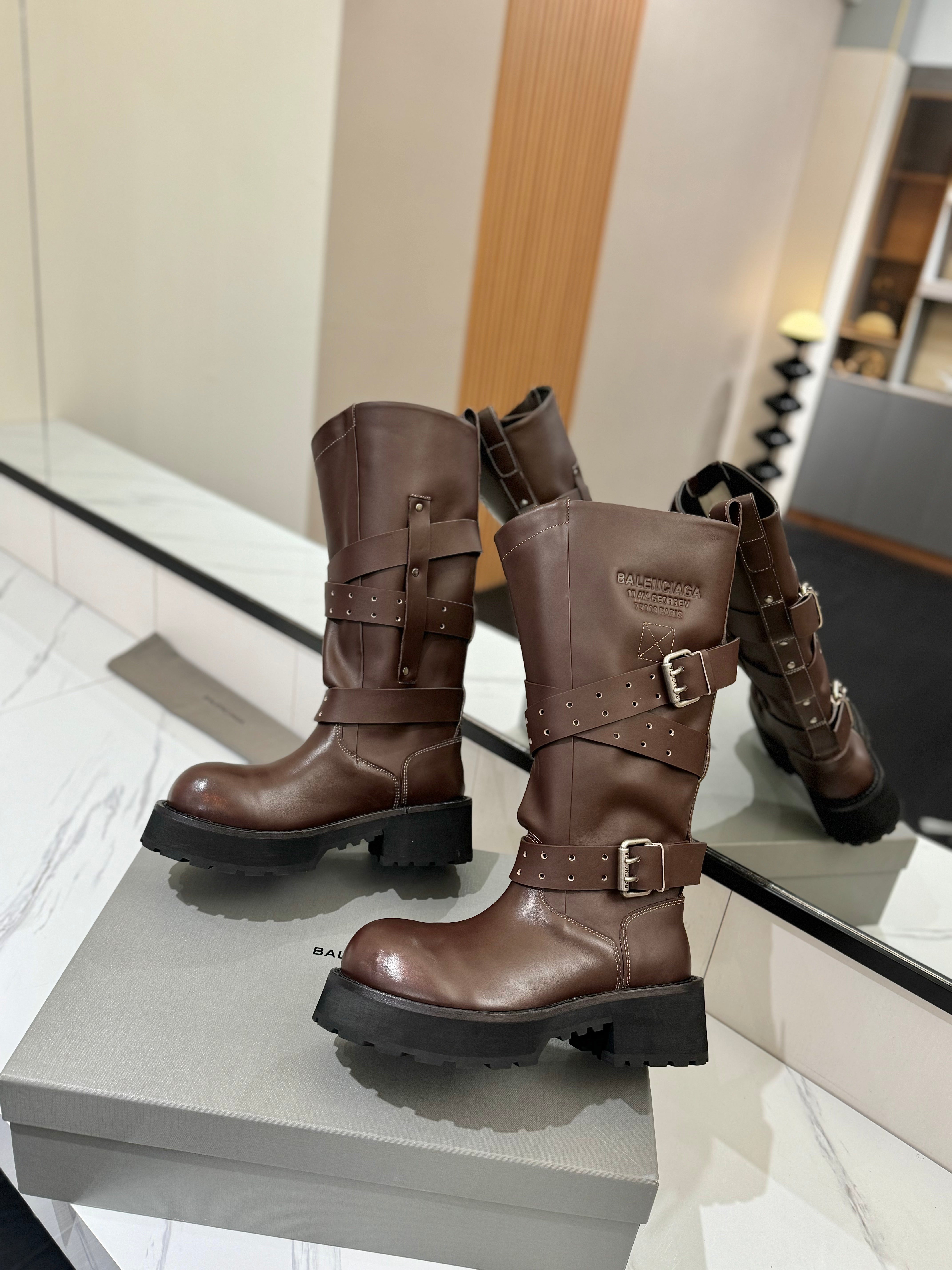 Balenciaga 25s buckled high boots brown calfskin 467612