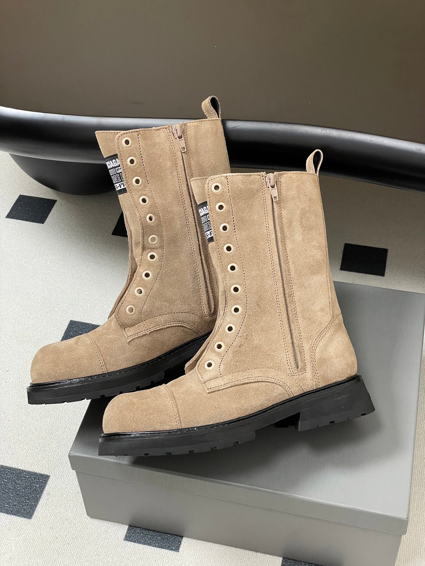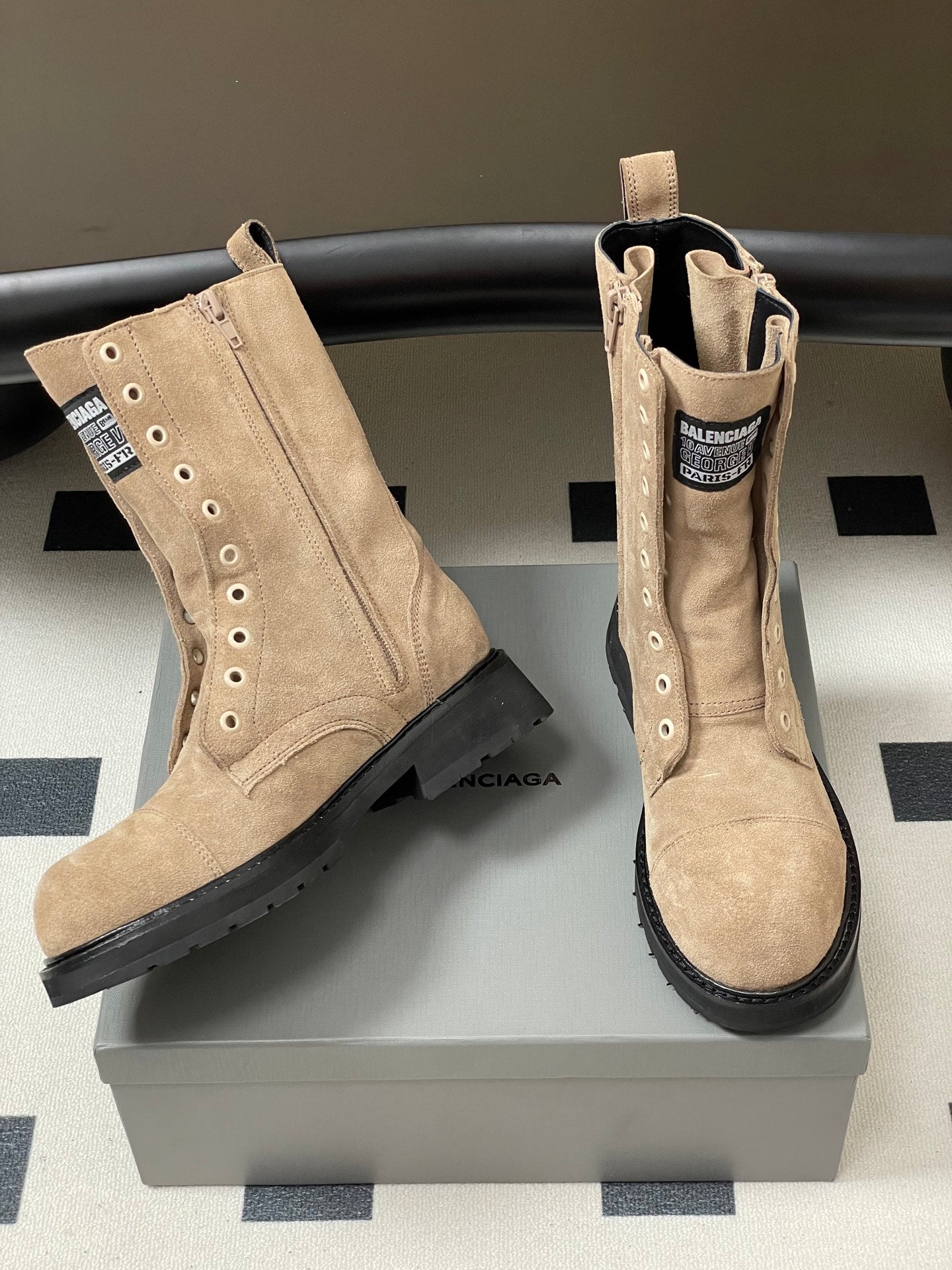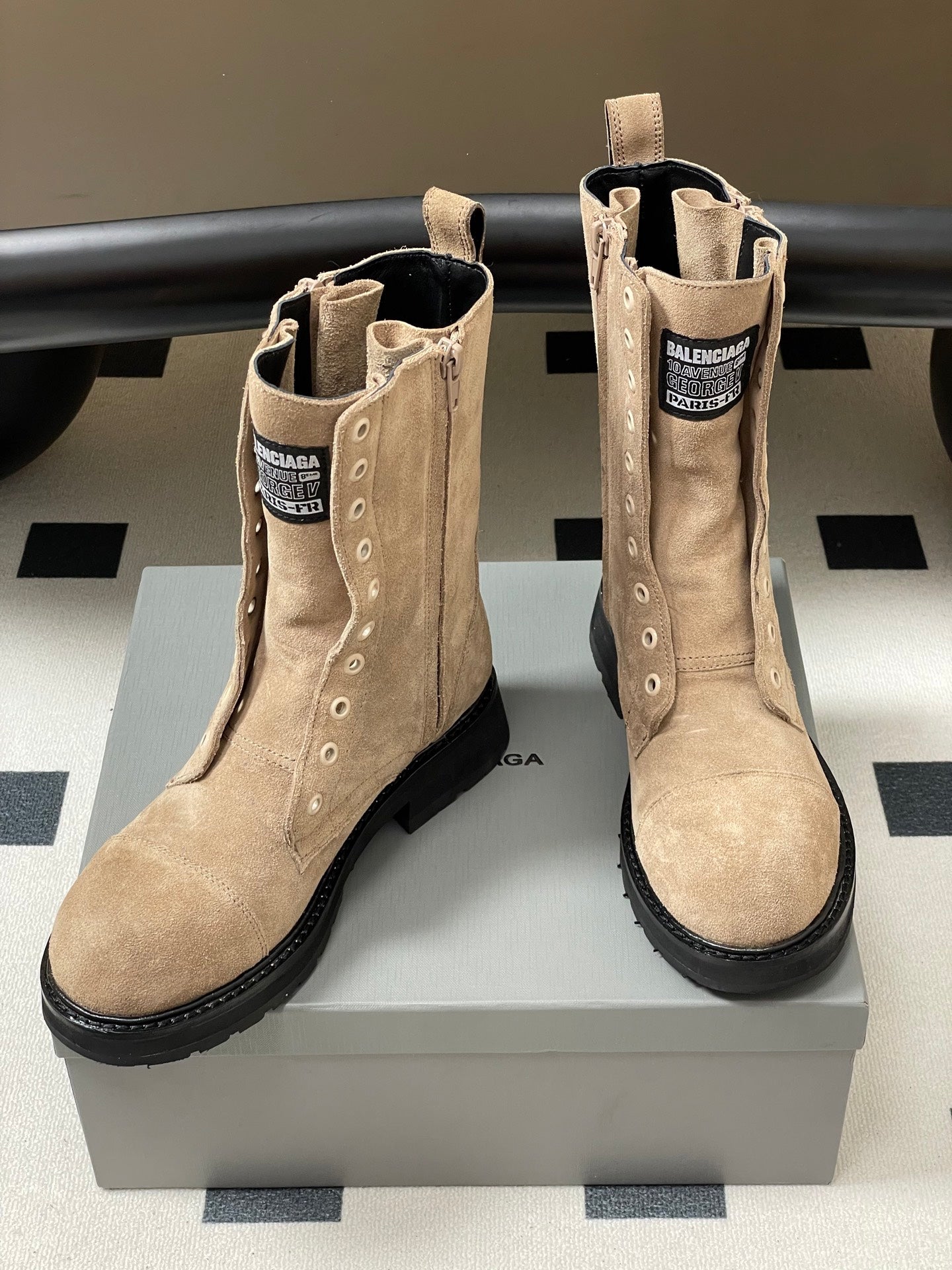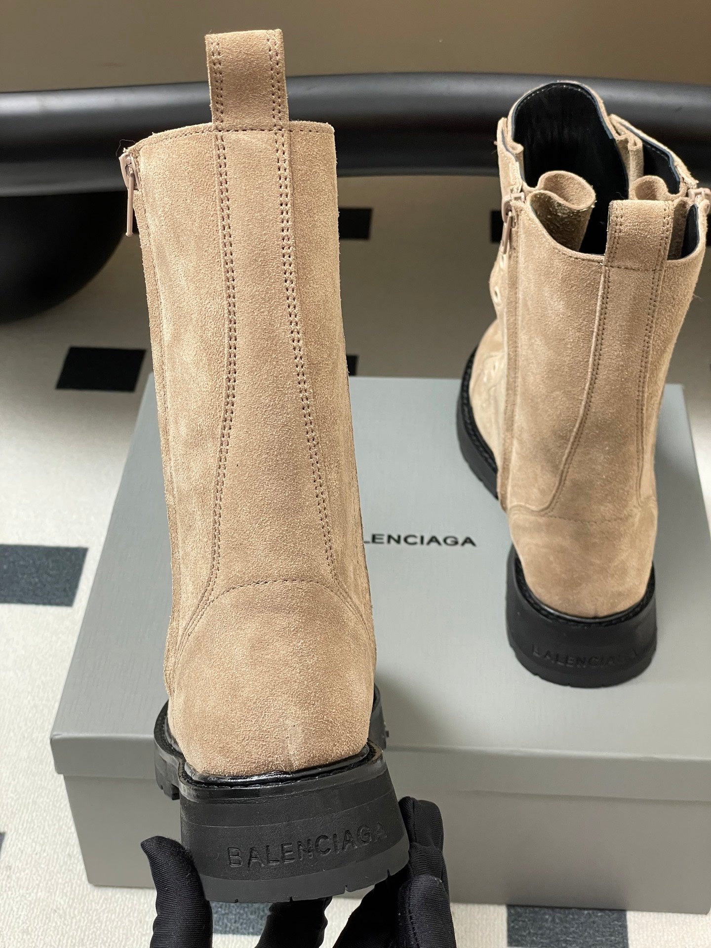 Balenciaga 25ss short boots light beige suede 469071