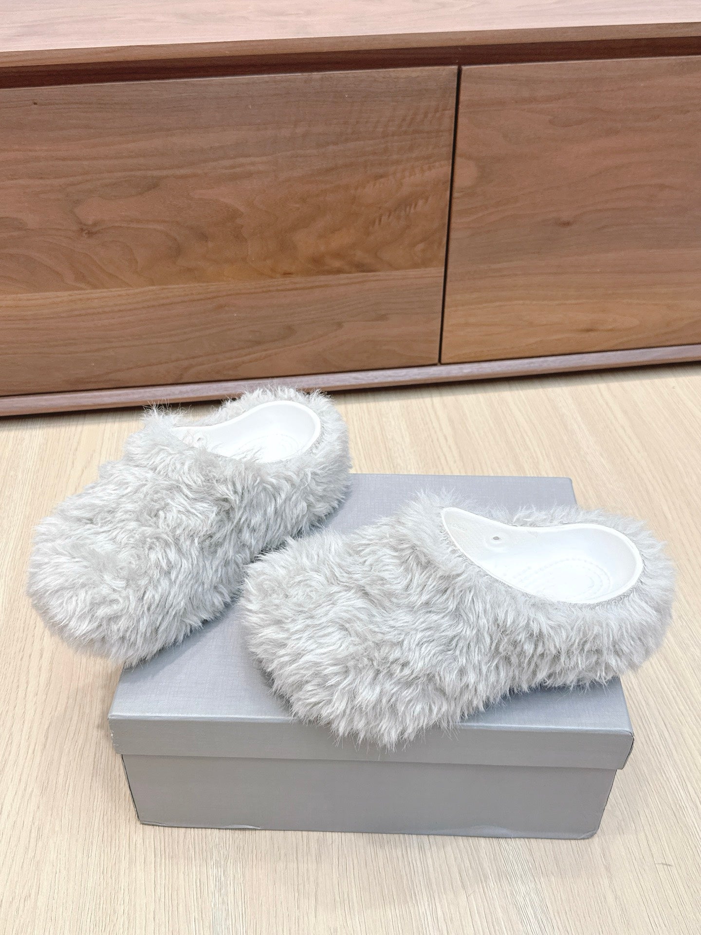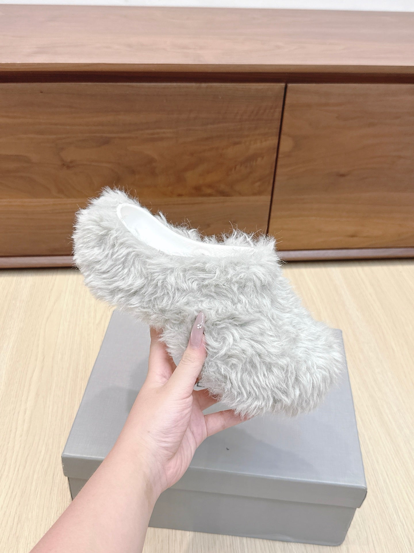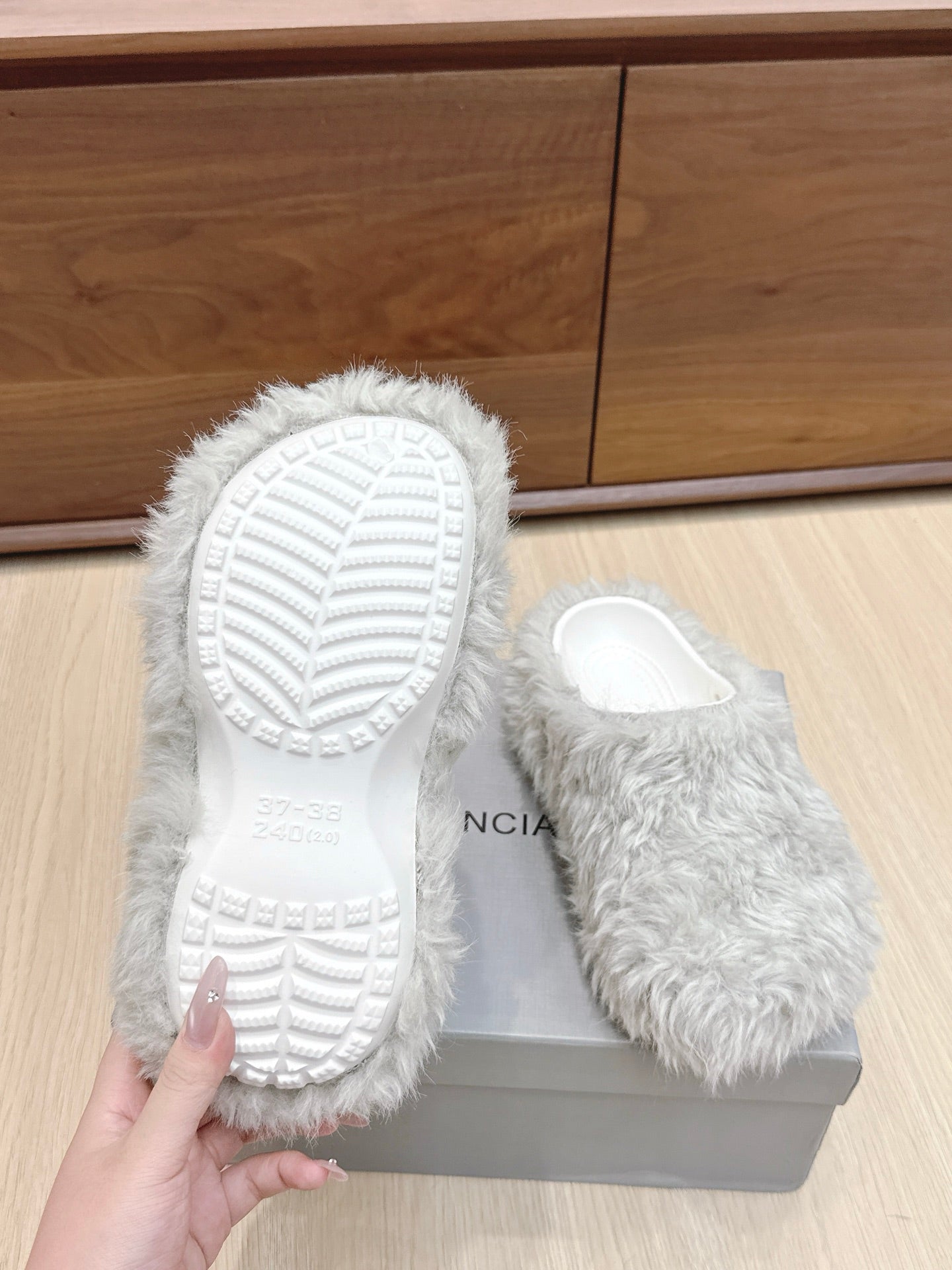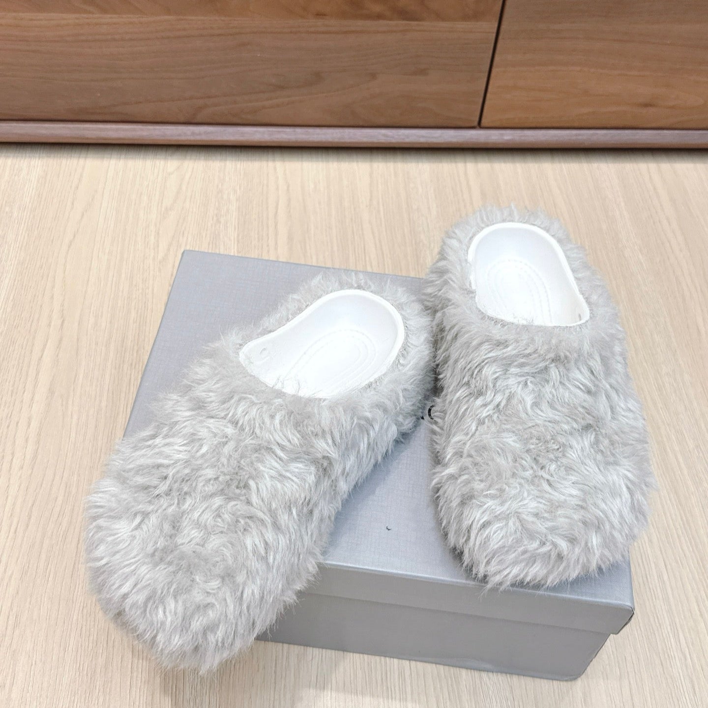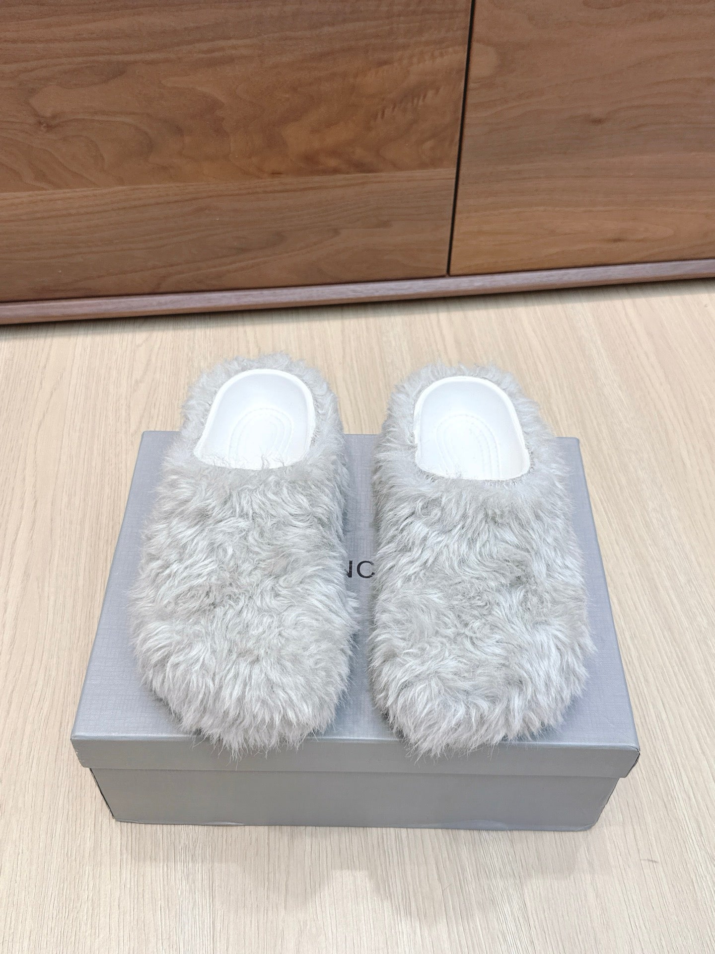 Balenciaga 25ss slippers light grey wool 462674