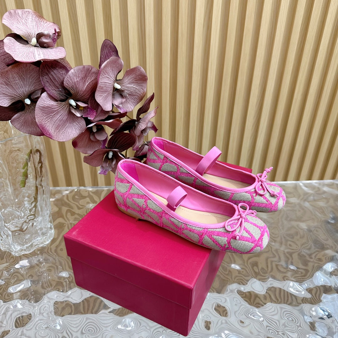 Ballerina In Toile Iconographe 20mm In Lotus Pink Mix Grey Brown Cotton Canvas And Lambskin 102828