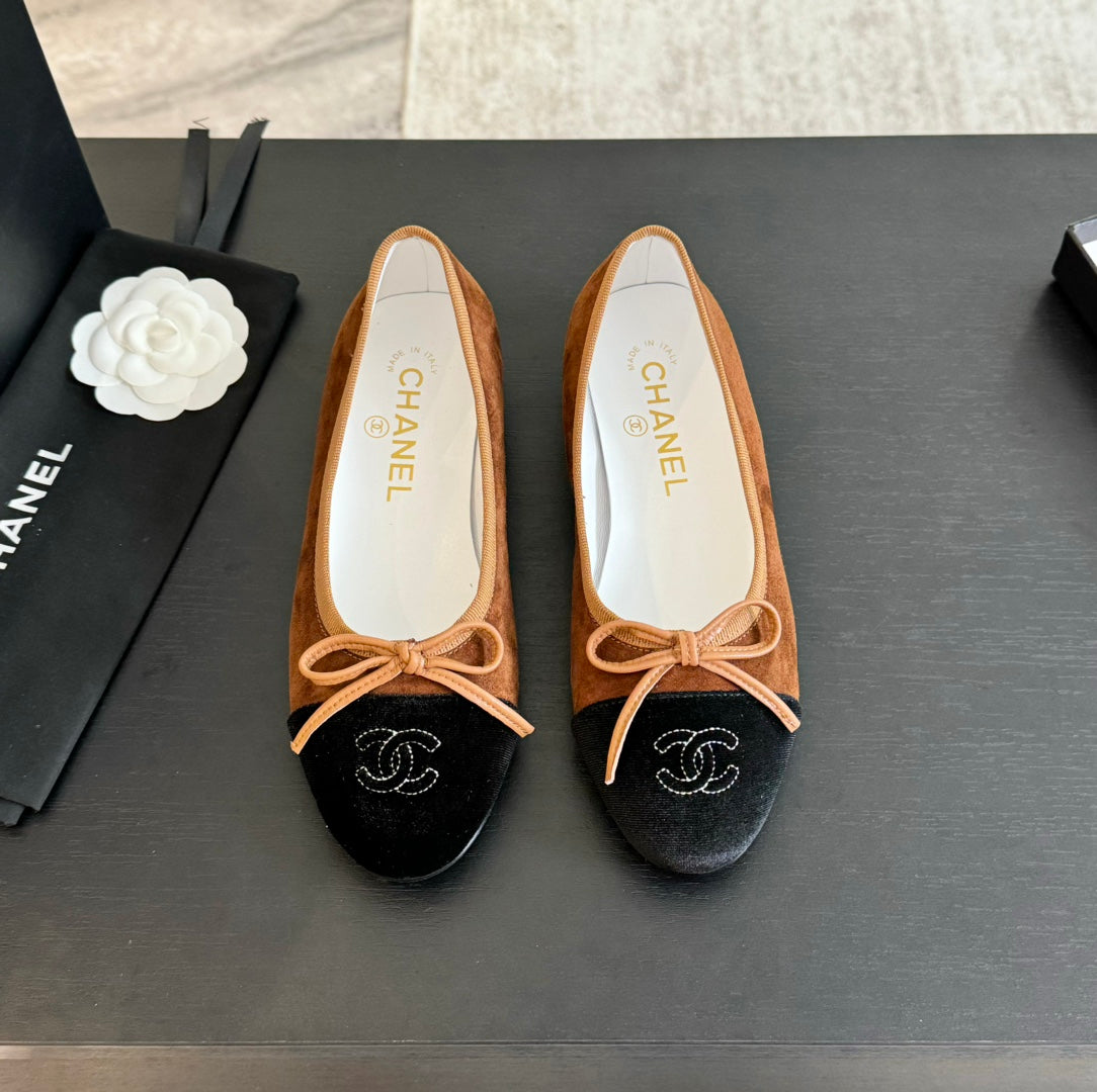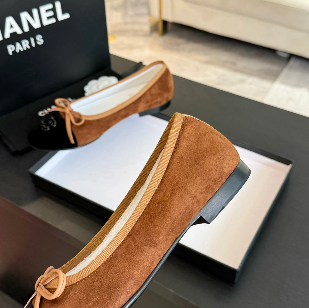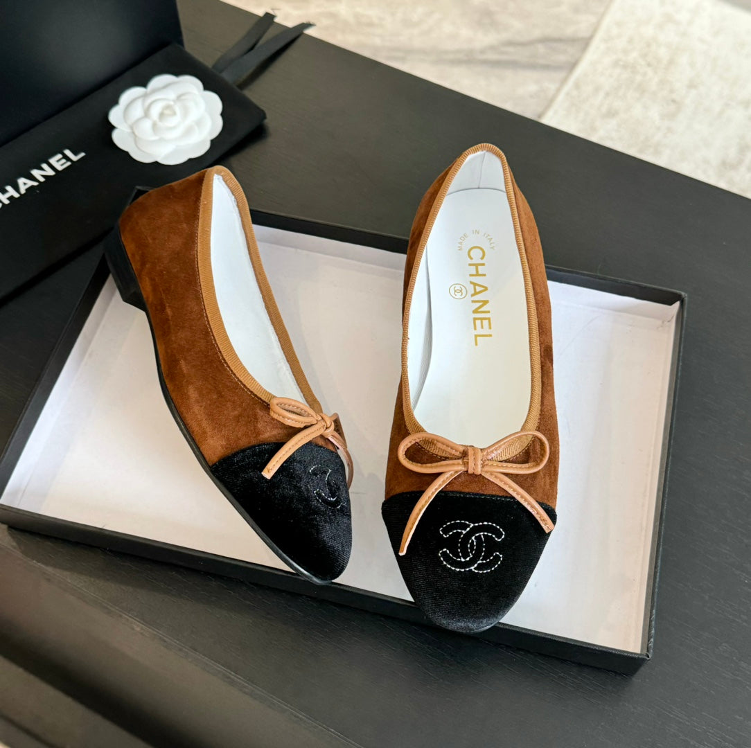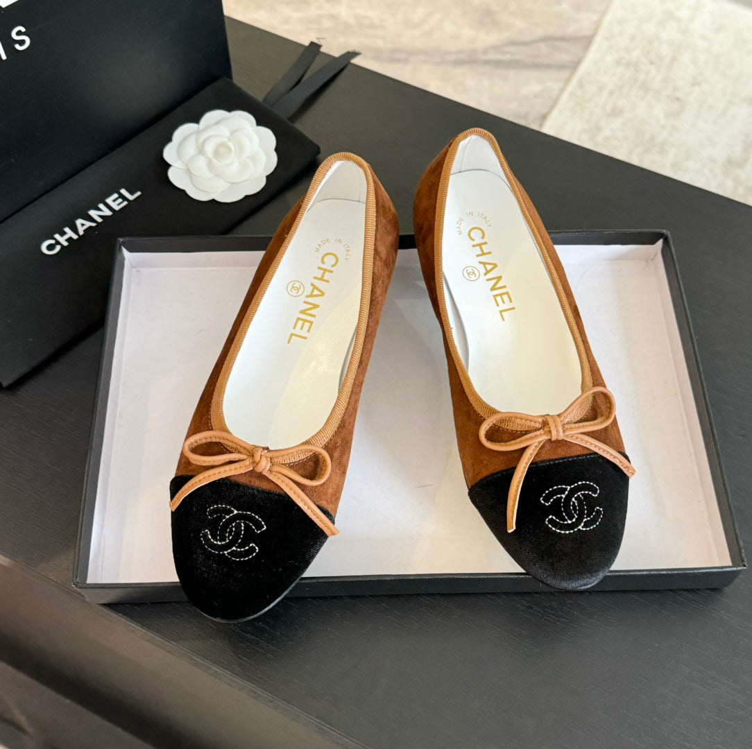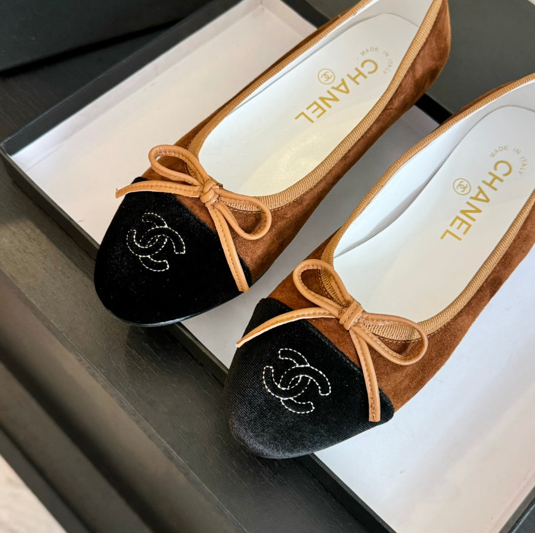 ballet flat dark brown suede black canvas