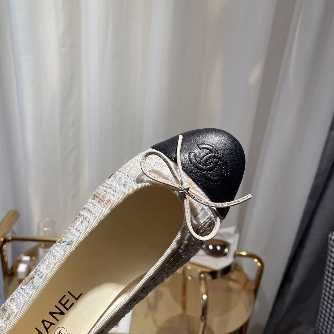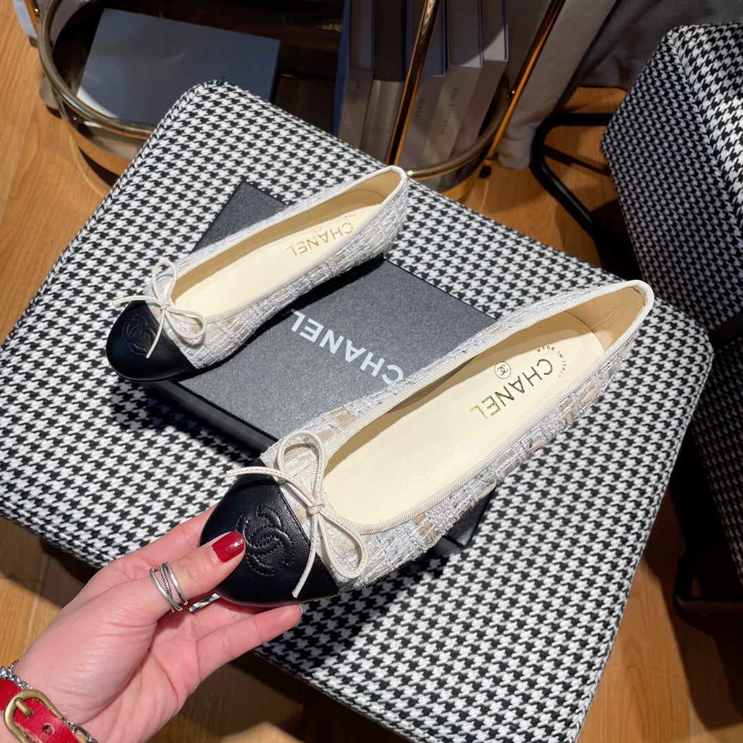 ballet flat gold white tweed black calfskin