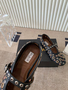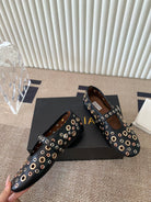 ballet flat in eyelet black lambskin