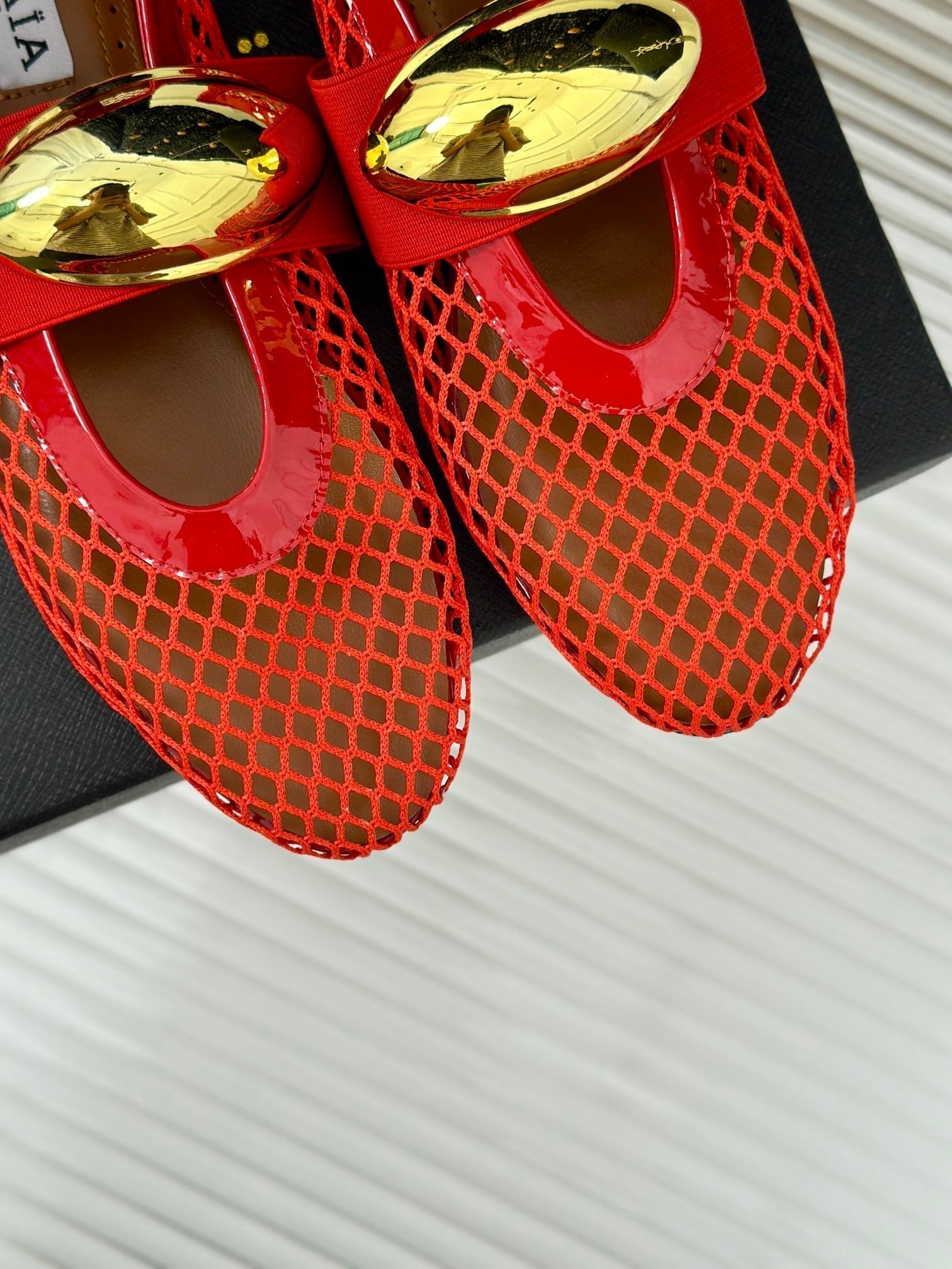 ballet flat jewel fishnet red lambskin