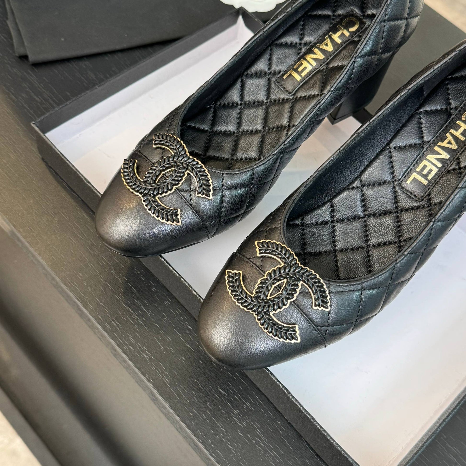 ballet flat with high heel 7cm black quilted lambskin