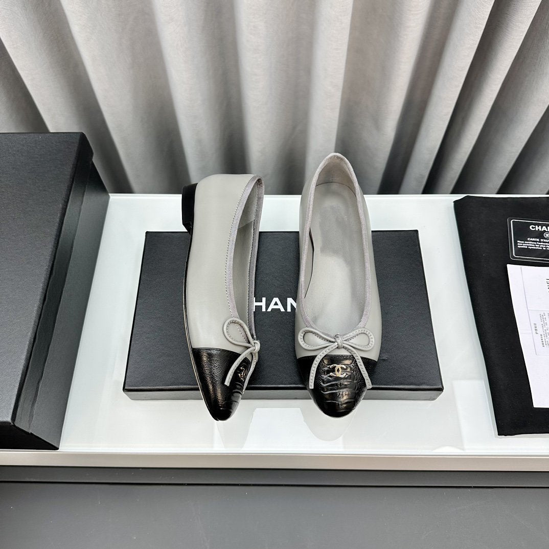 ballet flats grey black lambskin