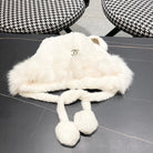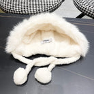 • Women's Hat with plush material and pom-pom design, featuring cute bunny ears, ideal for winter.