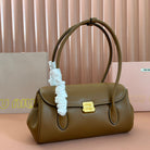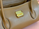BEAU TOP HANDLE BAG 28 IN CHOCOLATE BROWN GLOSSY CALFSKIN GOLD HARDWARE