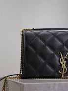 BECKY 22 IN BLACK QUILTED LAMBSKIN GOLD HARDWARE