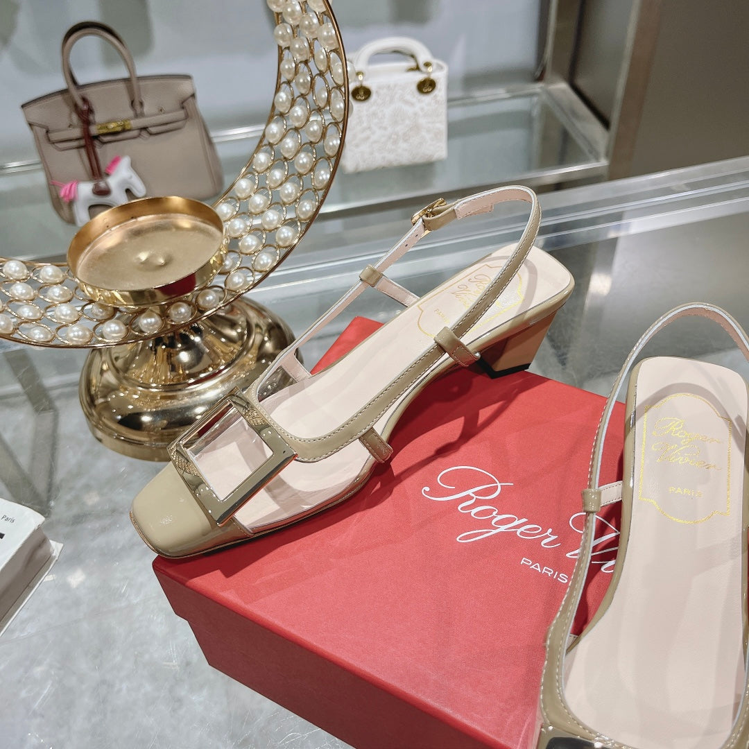 Belle Viv Metal Buckle Slingback Pumps 45 Transparent Camel Patent Leather