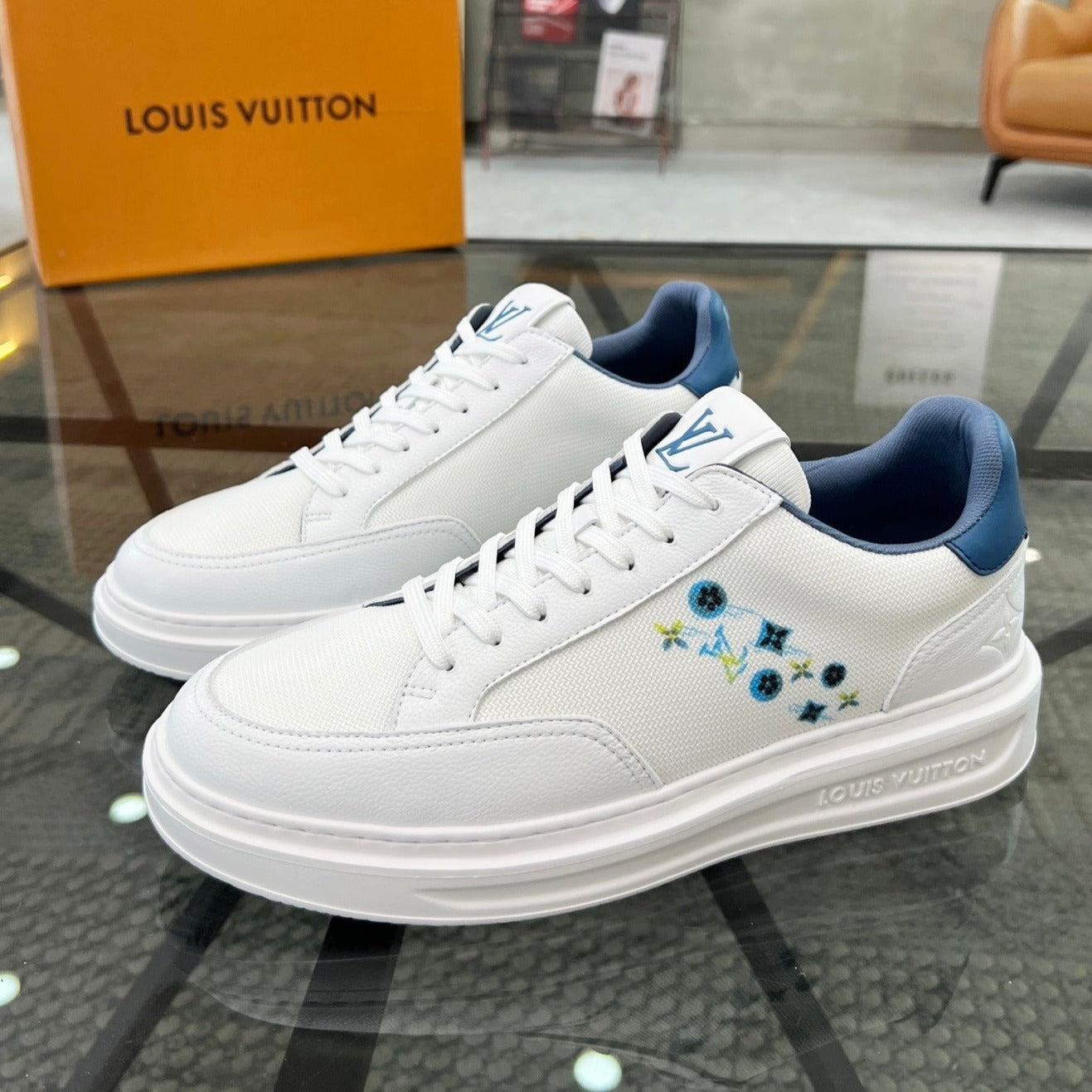 BEVERLY HILLS TRAINERS WHITE MIX DENIM BLUE CALFSKIN AND MESH FABRIC