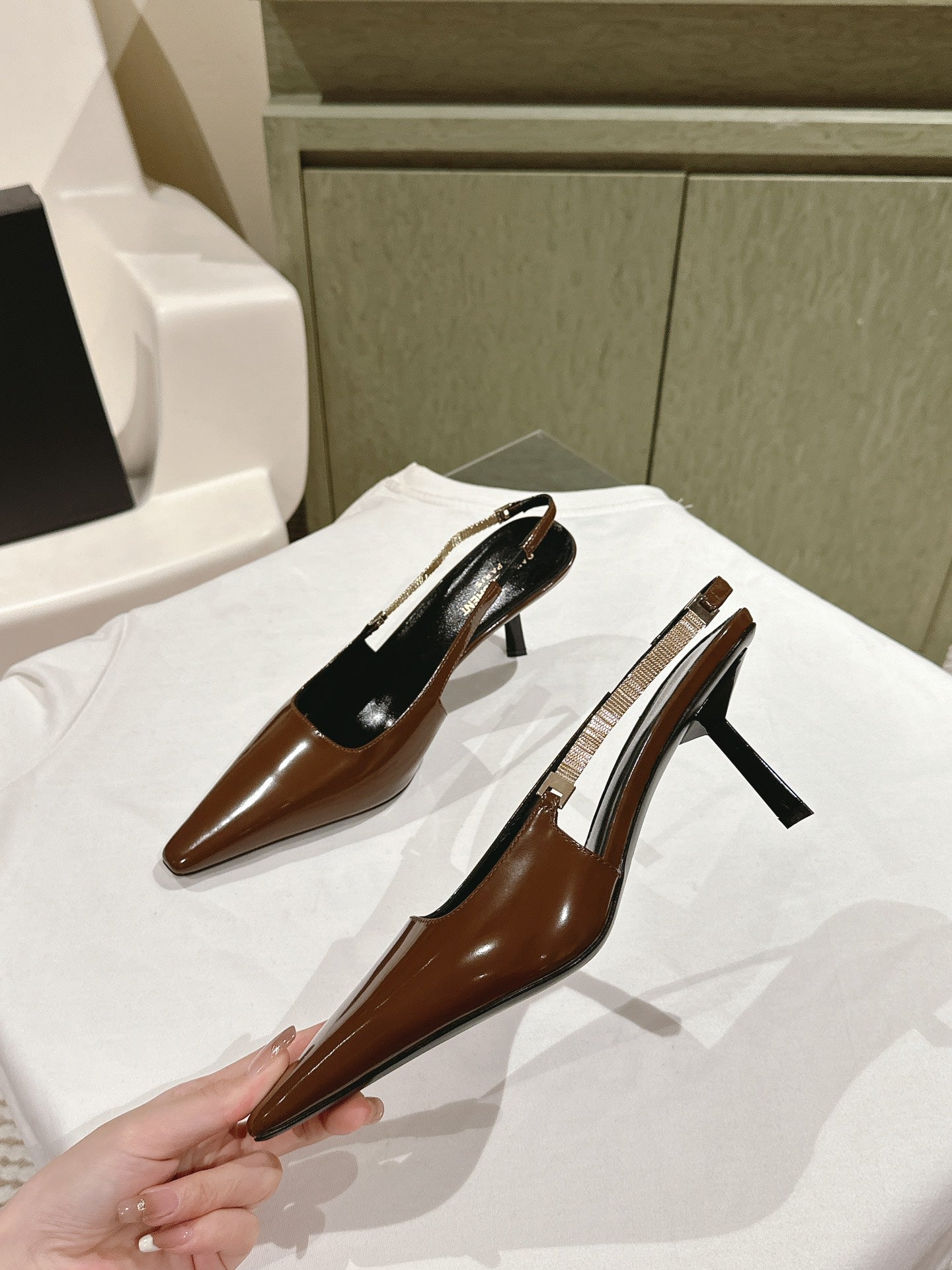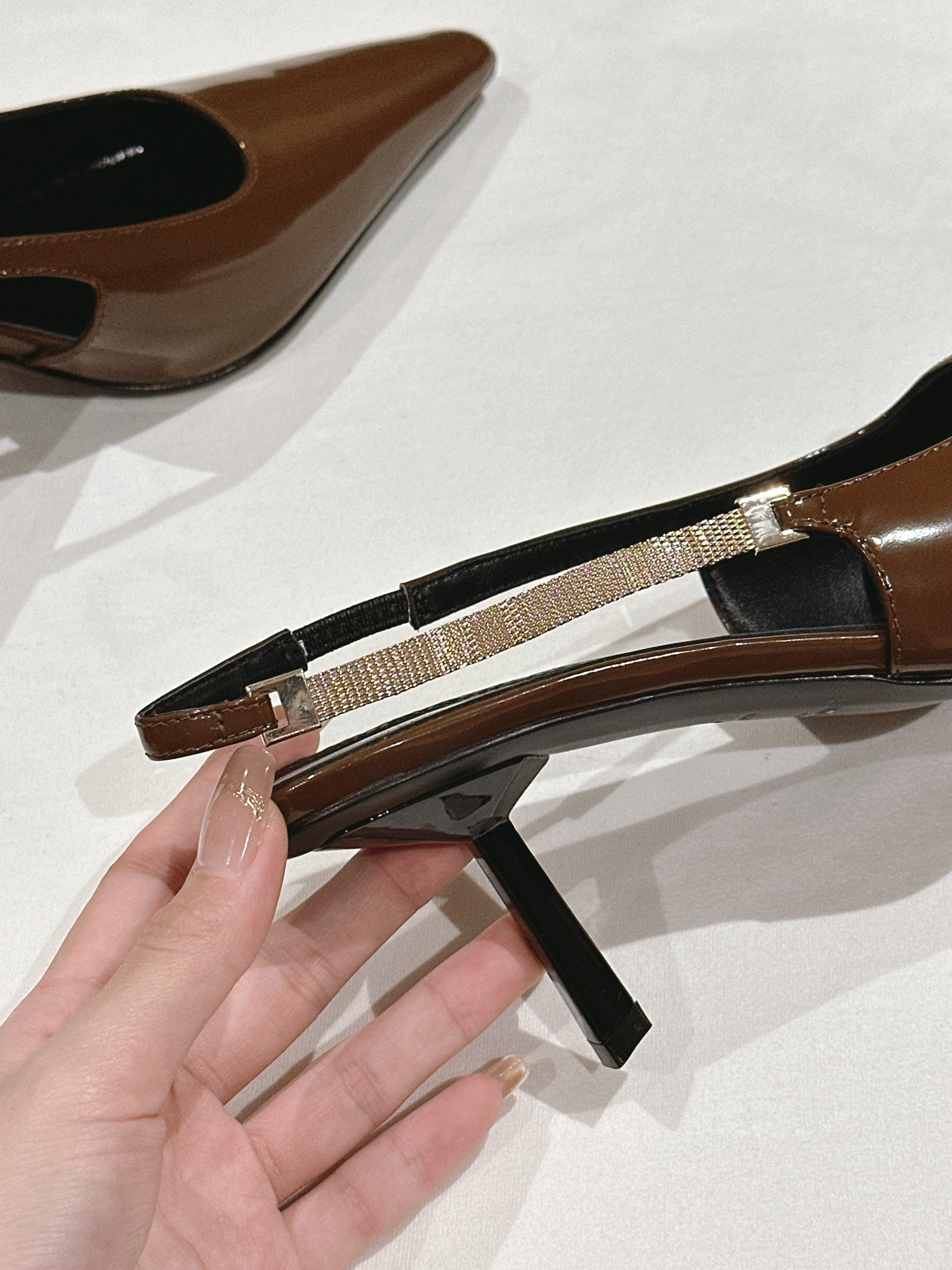 BLAKE SLINGBACK PUMPS 80 IN BROWN PATENT LEATHER