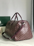 BOSTON 50 BAG IN WINE RED GOYARDINE CANVAS AND CALFSKIN TRIM