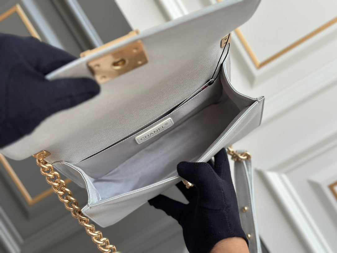 boy medium 25 grey quilted caviar aged gold hardware