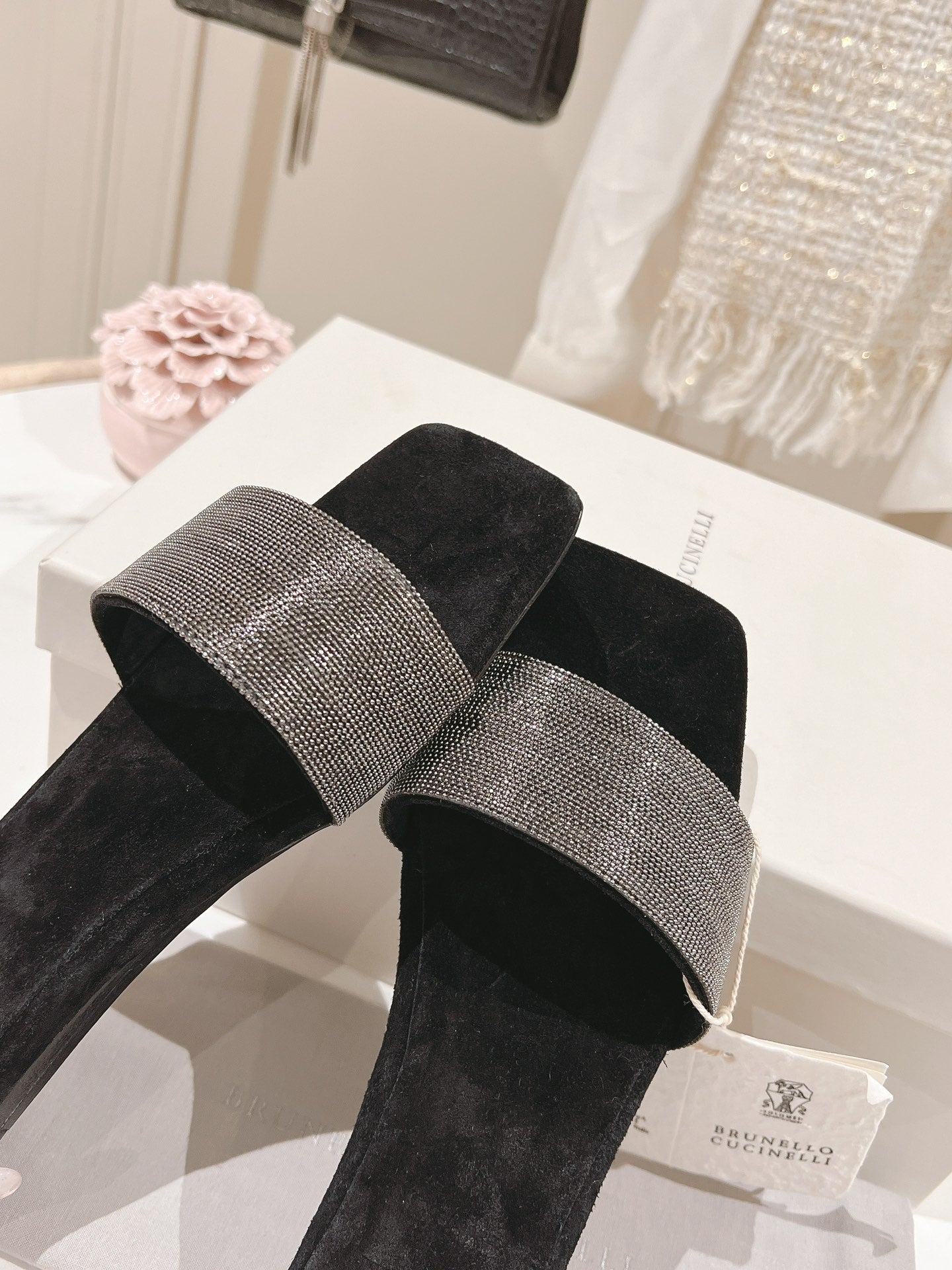 brunello sandal black suede